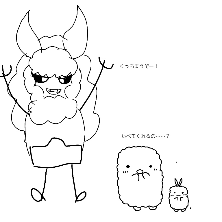 エミヤさん特製ドラゴンステーキ食べる?人間って狂気の渦中にいながらも何かを見出だすことができるんだなって思いました。(小太郎くんの人を見ながら)