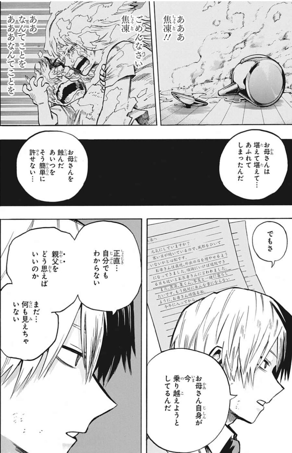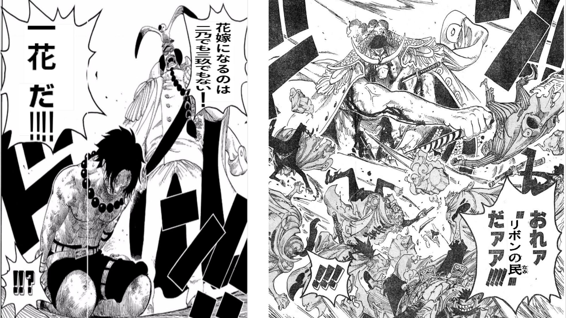 その横ではティーチに向かっていこうとするエースを白ひげが止めてるという