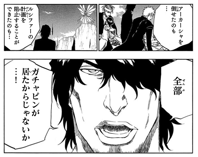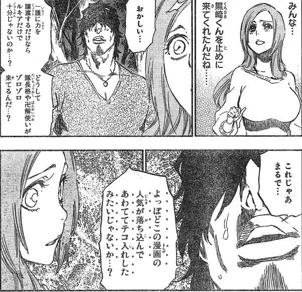 いつものメンツの死神達がズラッと駆けつけるとことチャドと織姫がすげー雑に退場するとこ見てるとテコ入れ感がすごいもの