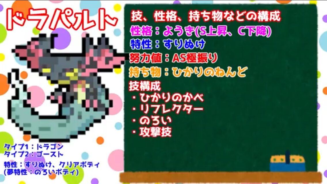そして、上位のポケモンは型も多い(壁貼りドラパルトとかいう最近流行りの変態型)