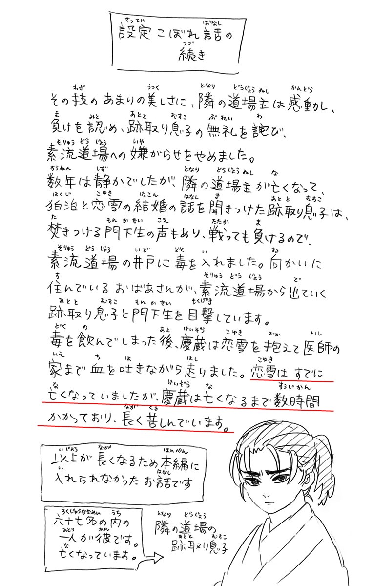 上弦の壱の話ではなく(上弦の壱はメイン級だと思うし)うたの裏設定が単行本で出たところで蛇足じゃないか?って意味