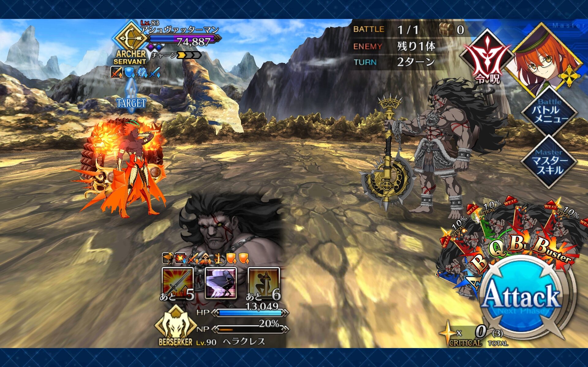 アーチャーインフェルノは、ぐだ子ひとりでも武蔵ちゃんひとりでも倒せない強敵で、かなりあつい展開だった>>976