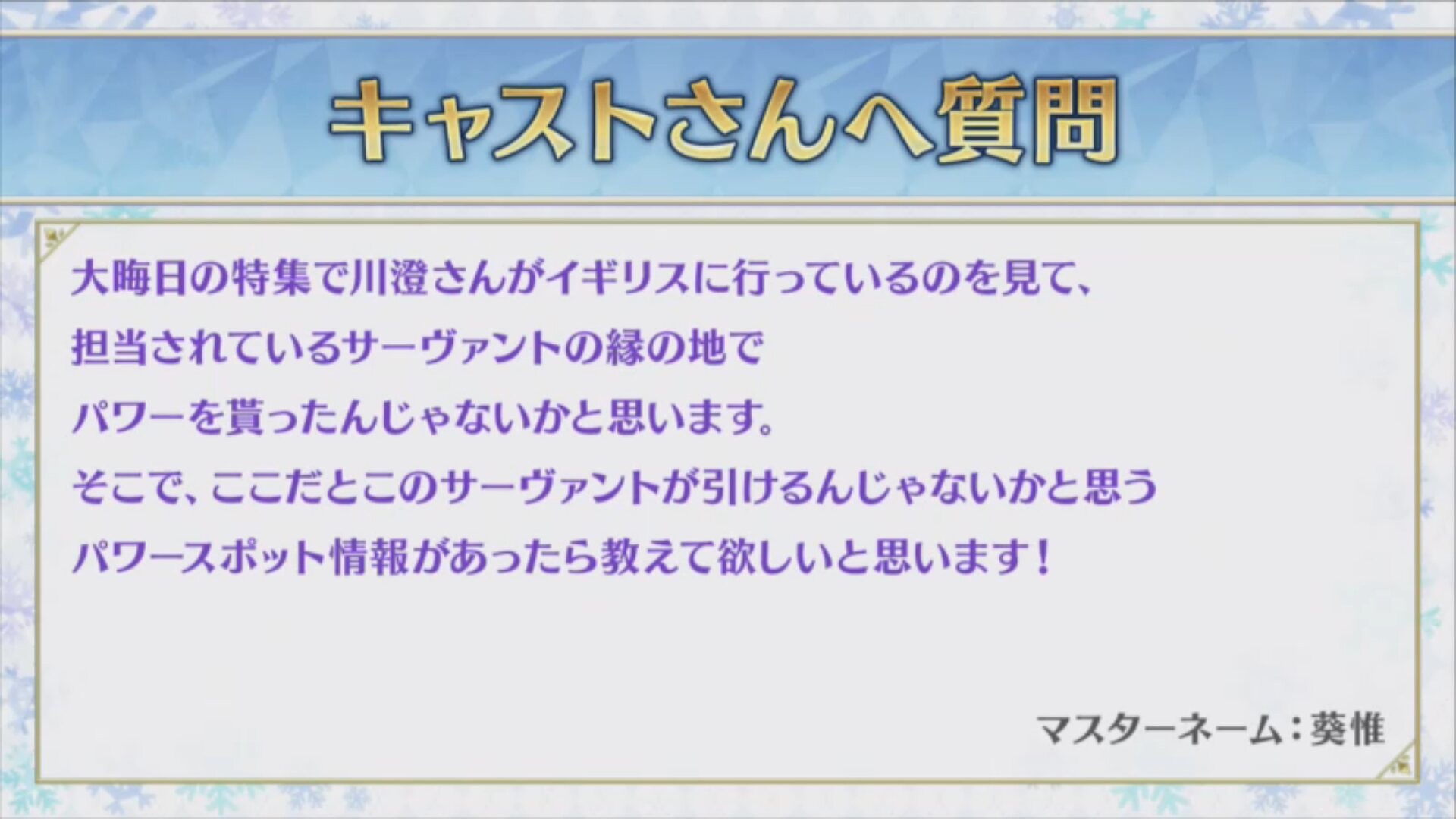 マシュの礼装欲しいな!