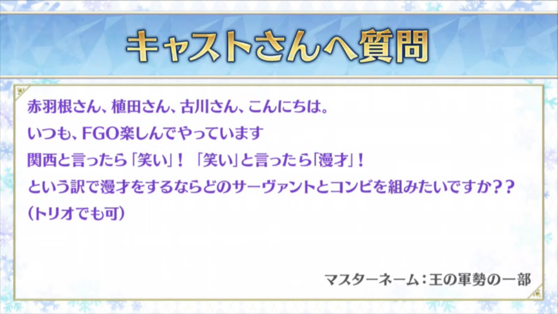 そういえばロマン役の鈴村さんが福袋で剣式さんを引いたらしいですね…