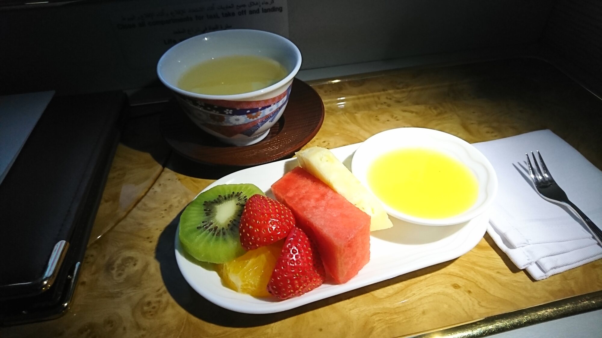 ファーストクラスかな?(困惑)ビジネスでもこんな美味しそうなのでてきた事無いぞ