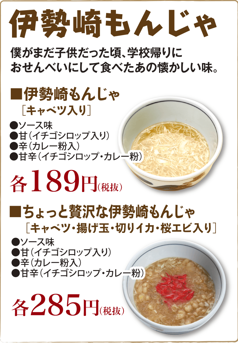 流石に駄菓子屋じゃカルメ焼きみたいなのしか売ってないかな、今はもんじゃは無い……