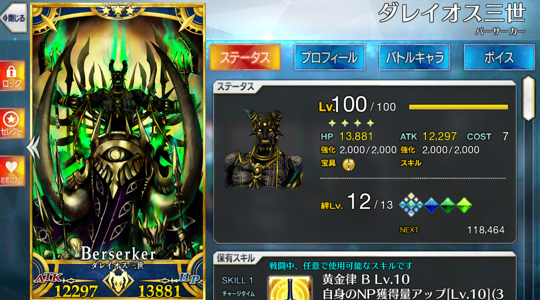コストが近い80~120付近の鯖に有用なのがいくらでもいるから、「足が遅い」「攻撃が遅い」「打たれ弱い」の青セイバーはパーティに入る余地がない