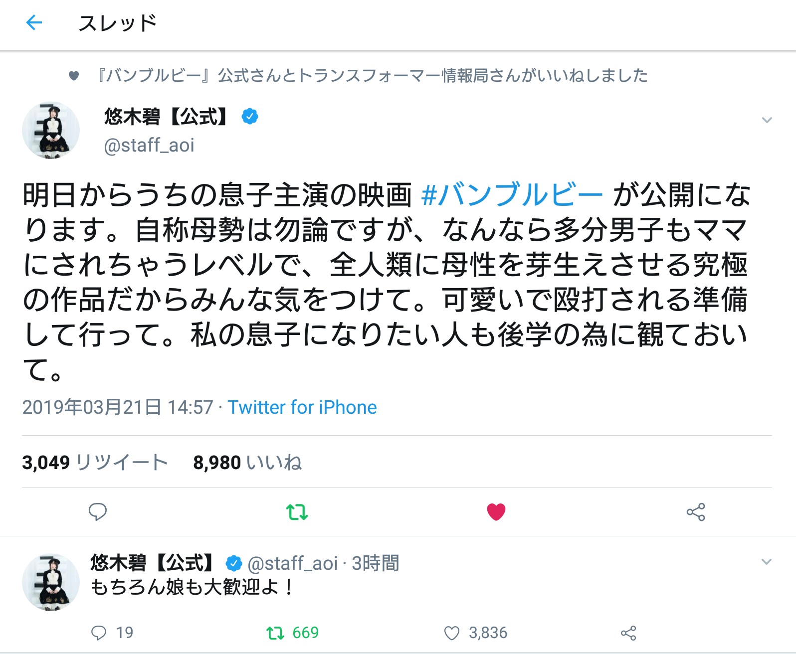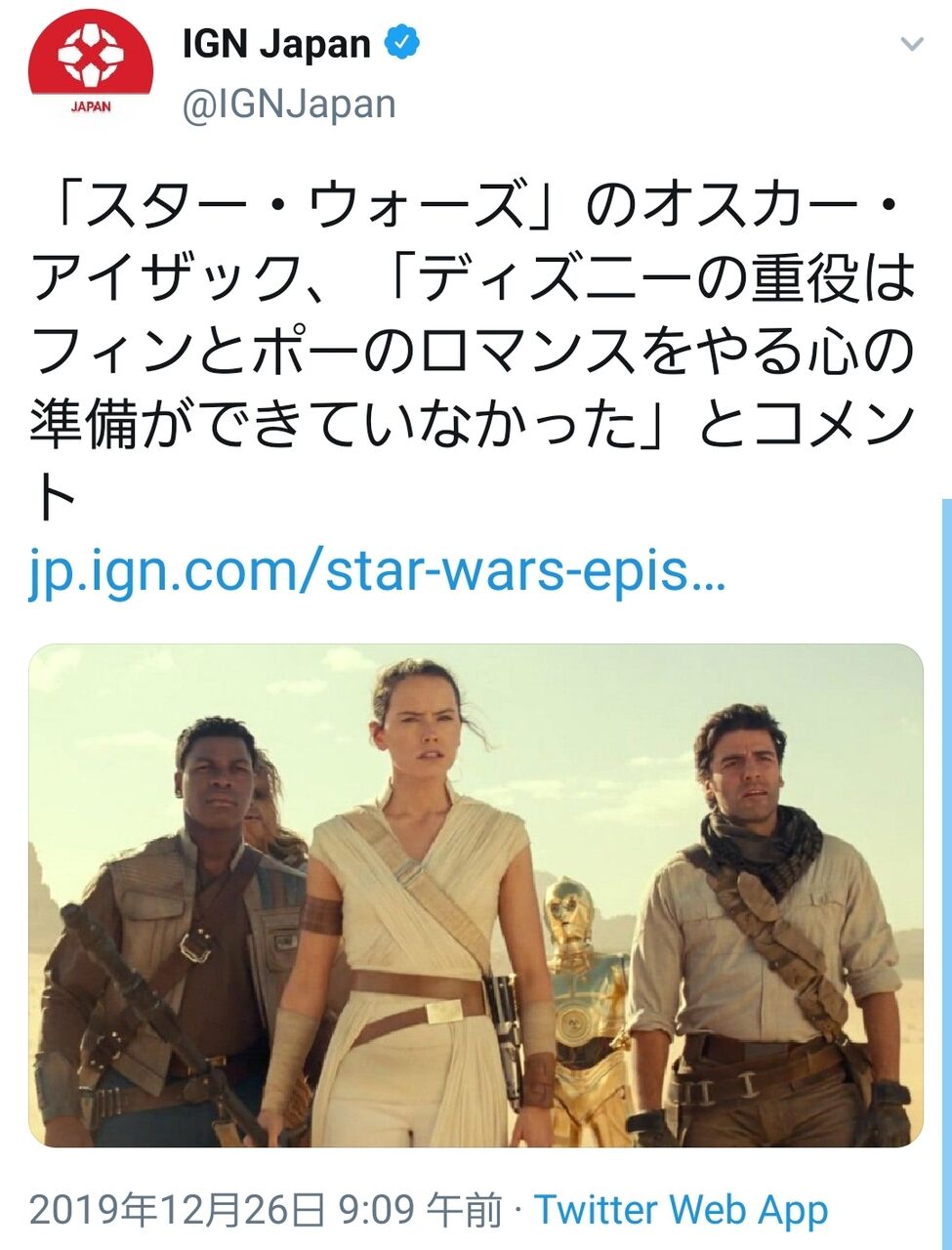 ウォズ「撮影現場で仲良すぎて父親なら心配になるぐらいの距離感でした」>>37