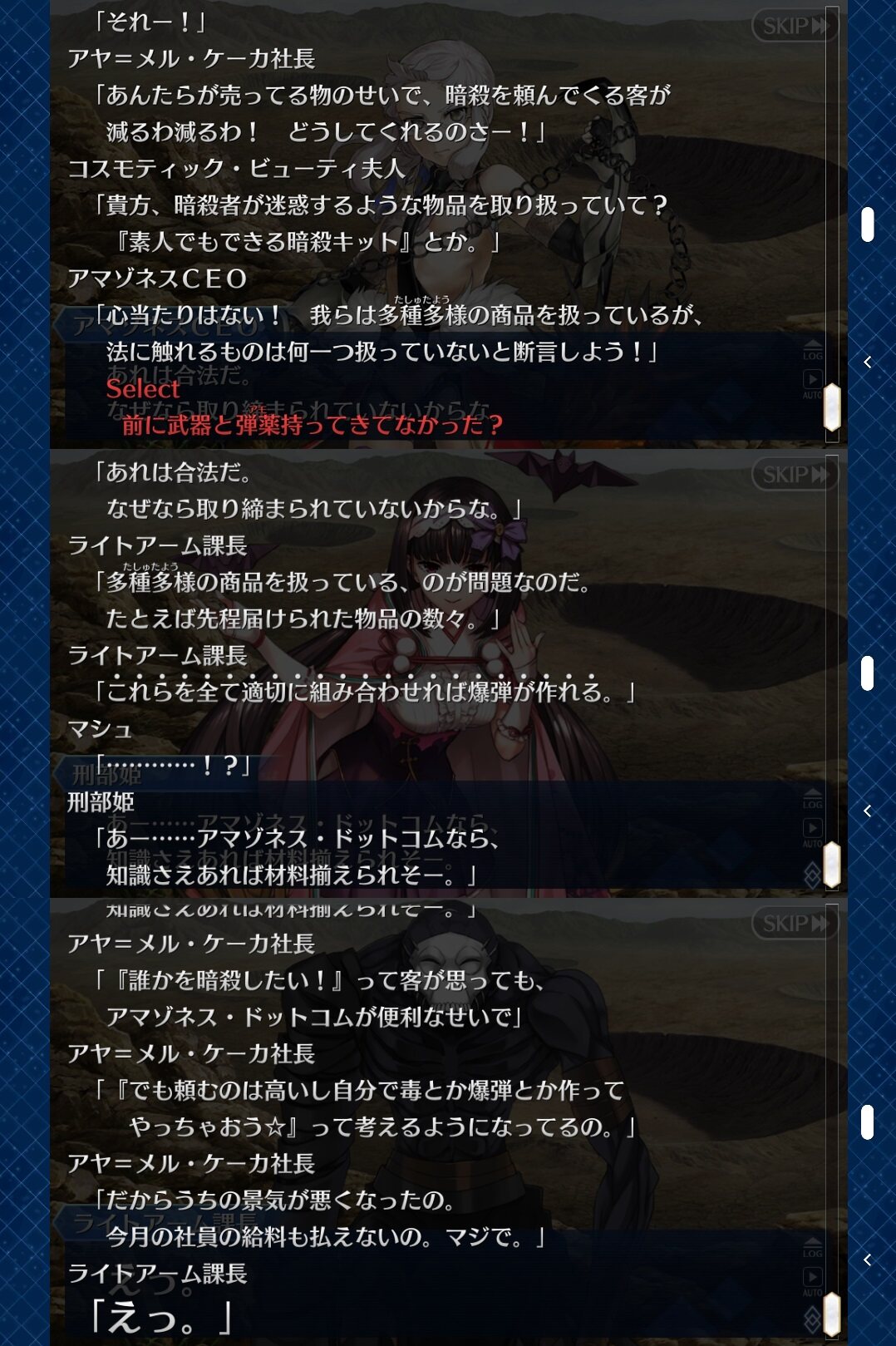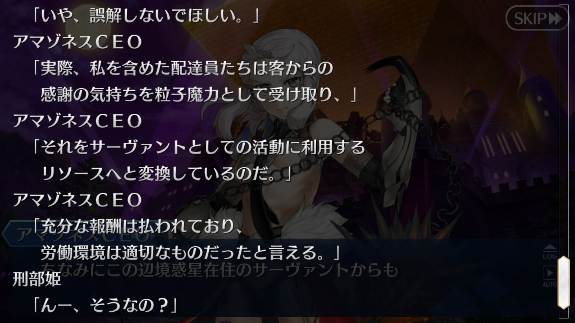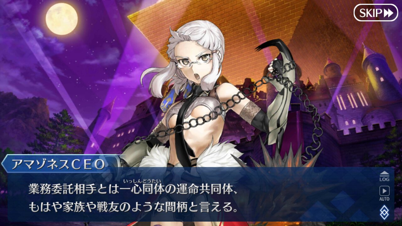 普段使いこなせるかは怪しいが、今回使えて良かった鯖の一体だったアマゾネス.com、セリフが汎用的で面白すぎてうっかり雑談で使いそうになる
