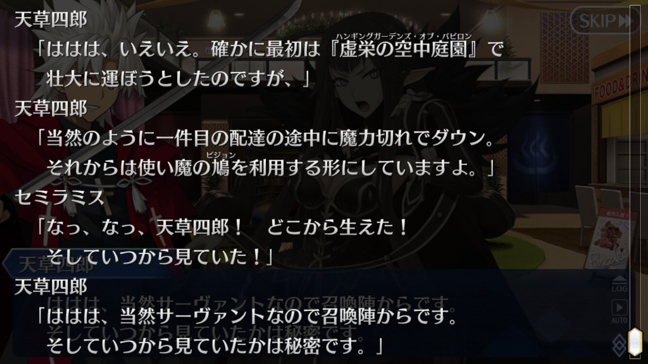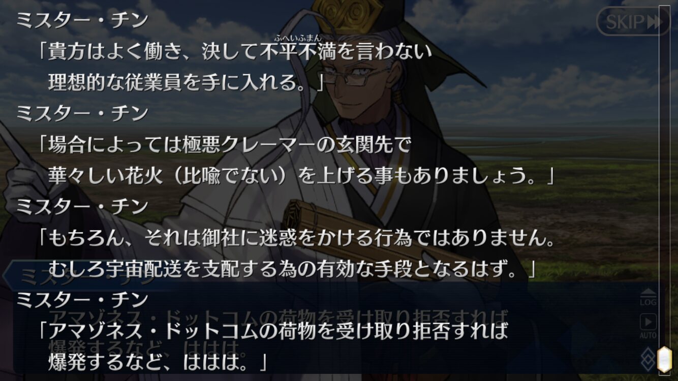 ってか表記事で、どうやって来てんの?サーヴァント・ユニバース時空から?って言ったら「そんなこと言ったら、カルデアに荷物配達しに来てたじゃんCEO(元々カルデアに来る手段を持ってる)」ってレスが来た。