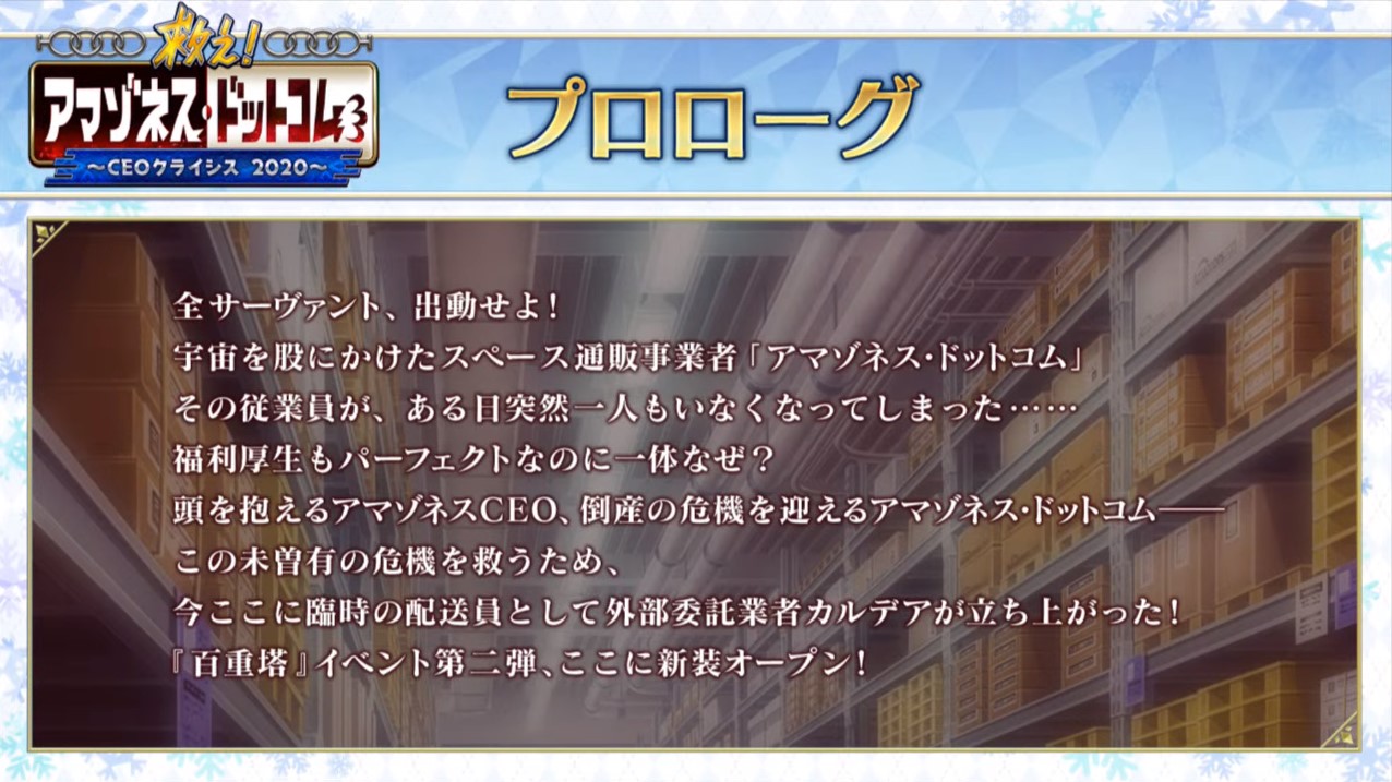 百重塔イベント第2弾「救え!アマゾネス・ドットコム 〜CEOクライシス 2020〜」の攻略・雑談スレッドです。