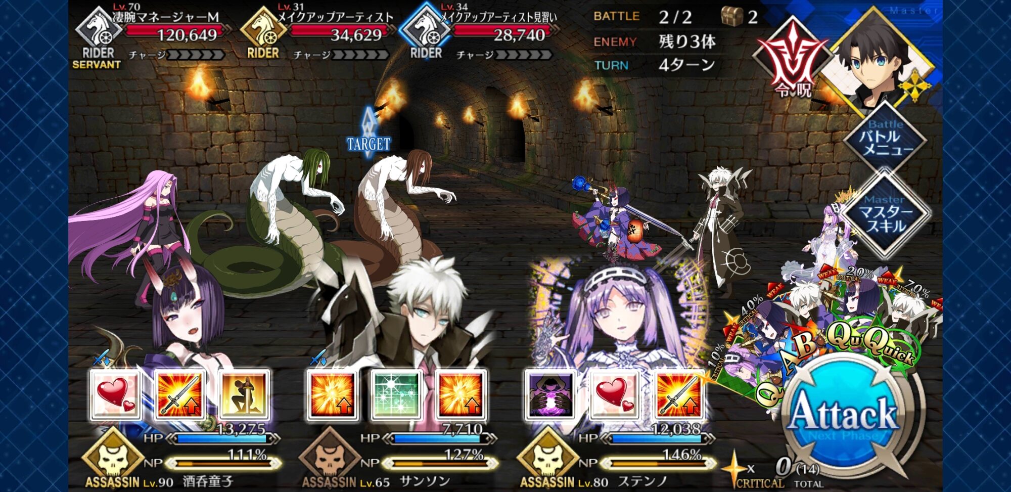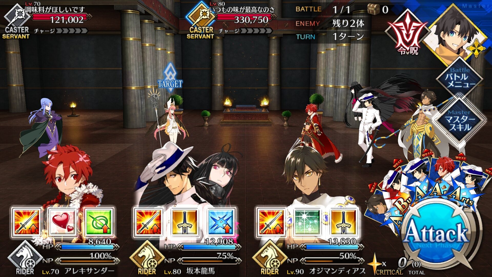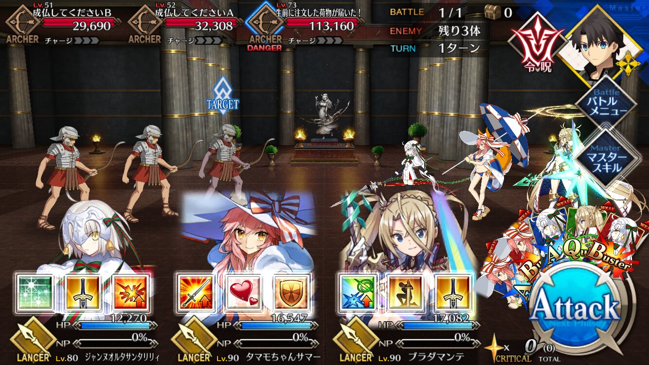 単騎だけで突っ込むとかは、ターゲット集中礼装で他の2体を退場させてからでないと無理だ>>13