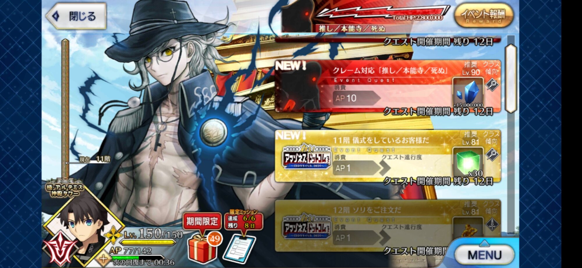 有給参加条件は冬木クリア……難易度は前回よりもさらに抑えめかな?