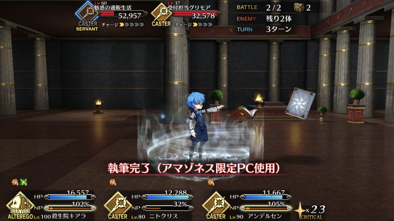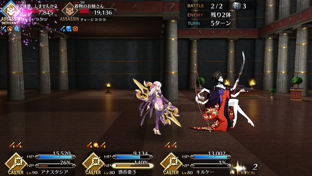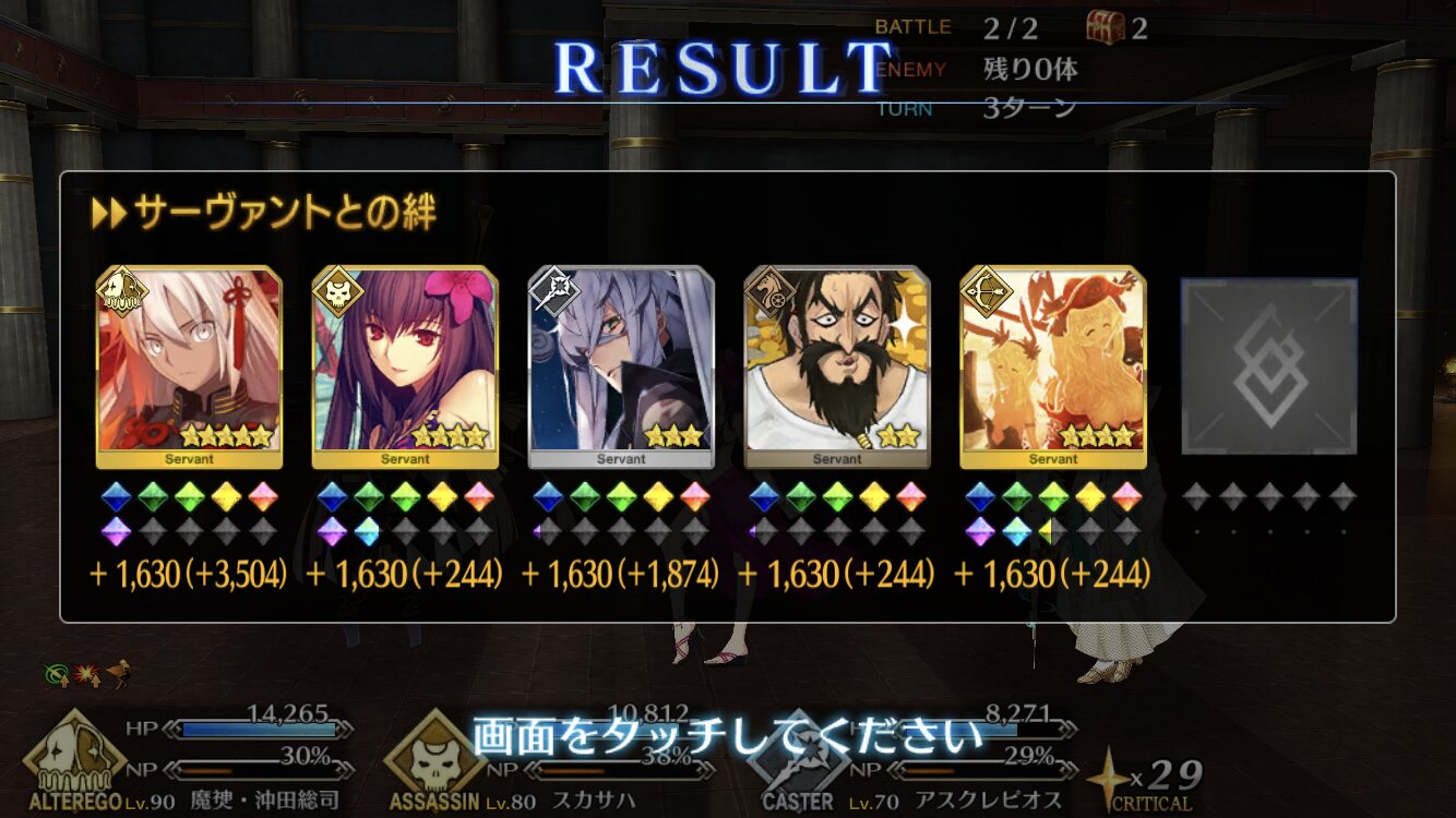 仕方ないので、最大5人編成できたらラッキー、くらいに思ってる。全く攻略見ずにやってたのと諸事情で早くクリアしないといけなかったからキルケー達の所、先にメディア倒してキルケーと殴りあってたけどあれキルケー先に倒せばすぐに終わってたんだ・・