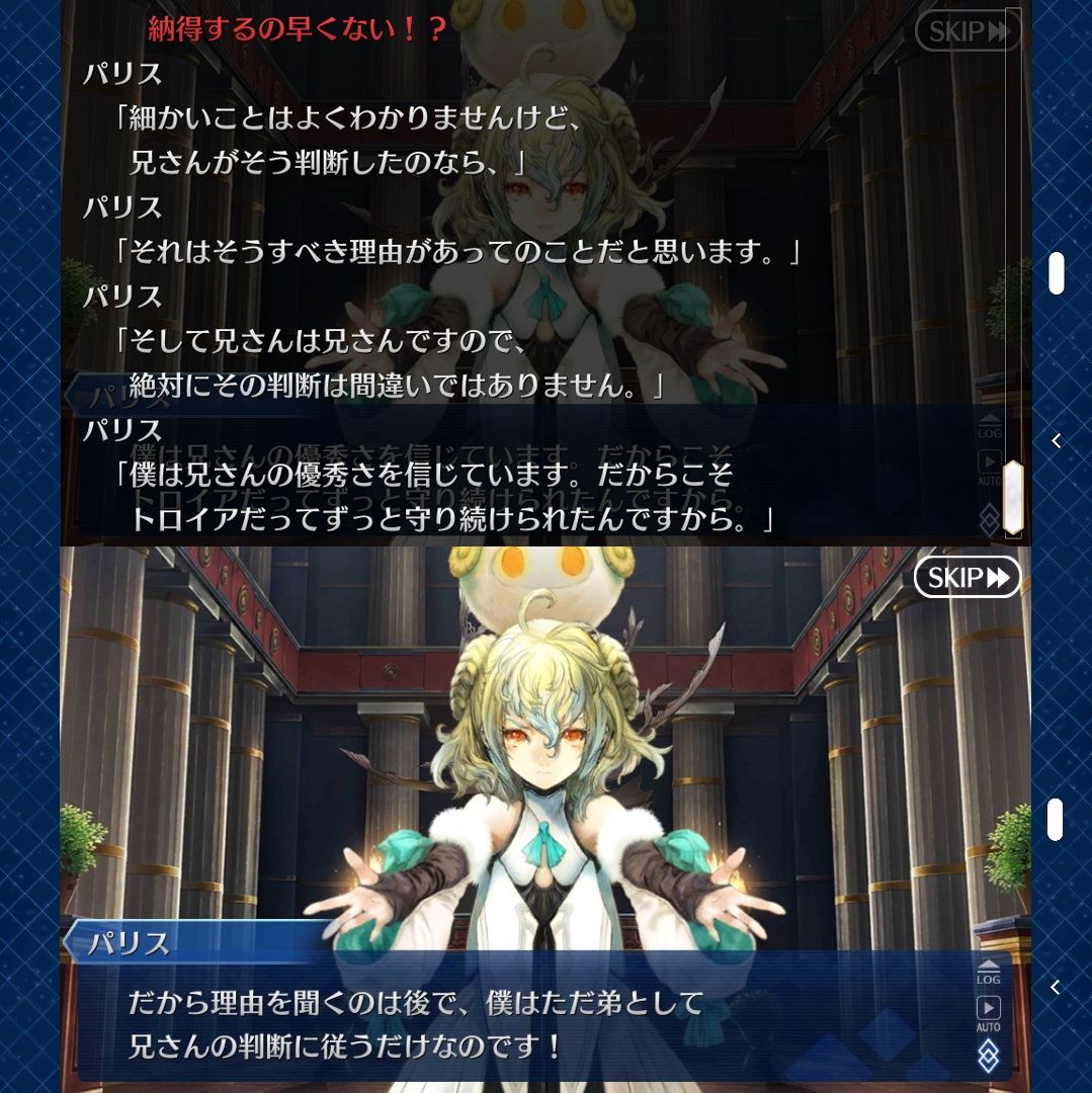 小説版アポクリファを読んでもないし、ペンテシレイアの幕間もやっていないとそういう感想になるかもしれないが、アキレウスは、ペンテシレイアによりにもよって戦場で「美しい」と言ったことをひどく後悔してるんだぜ。