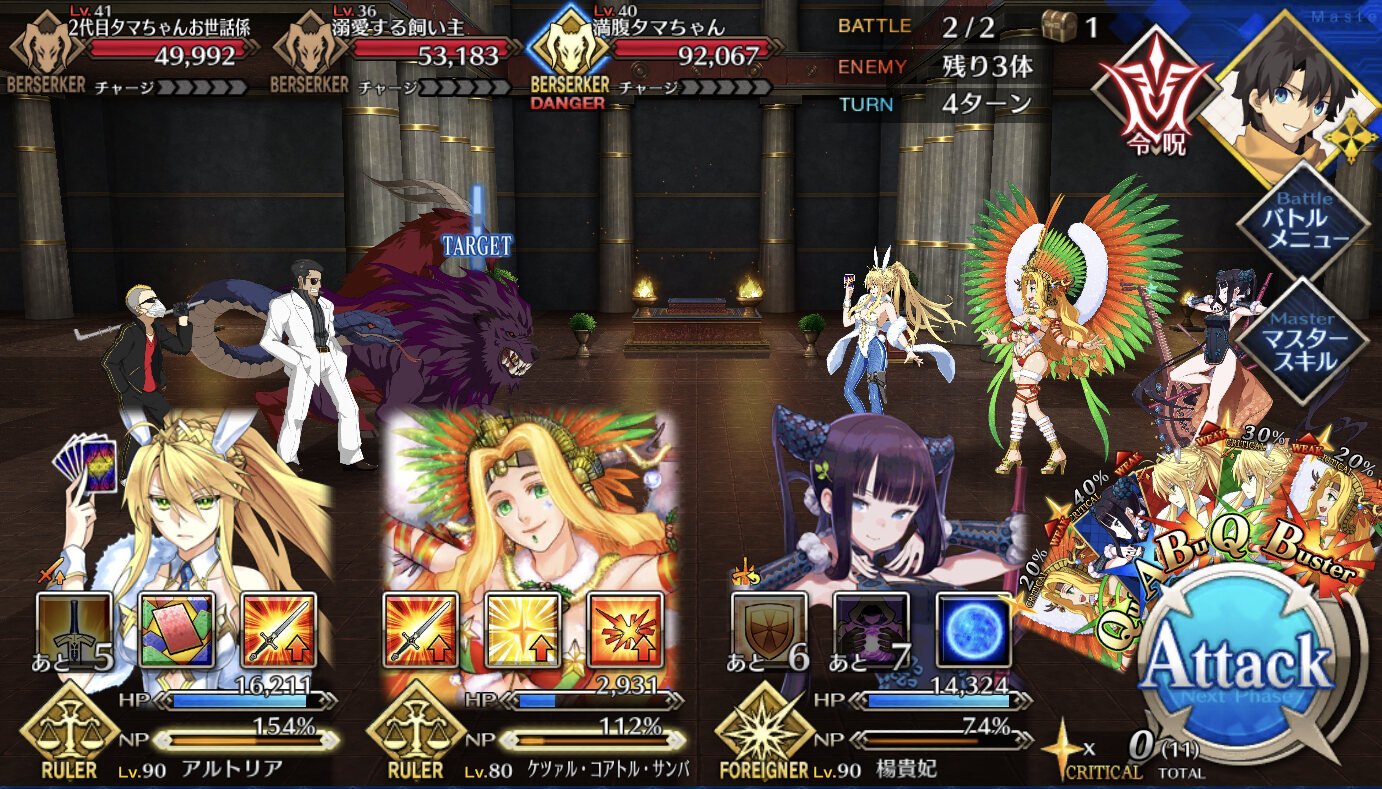 古参はぬるいイベントだけど、早駆けで追い付いたマスターには高難易度に化ける感じだな。初めのほうはむしろ殴ったほうが早いので全体宝具以外でも使える