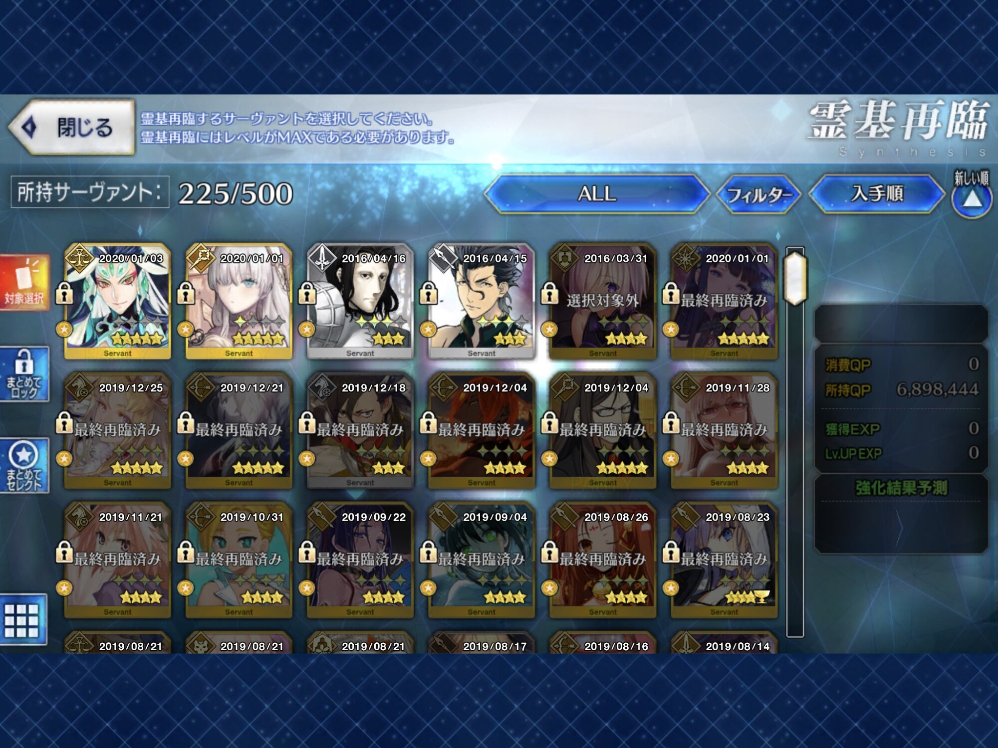 そういやどうせAP1は5分で回復だからって種火やQP稼いでから塔登ったな…