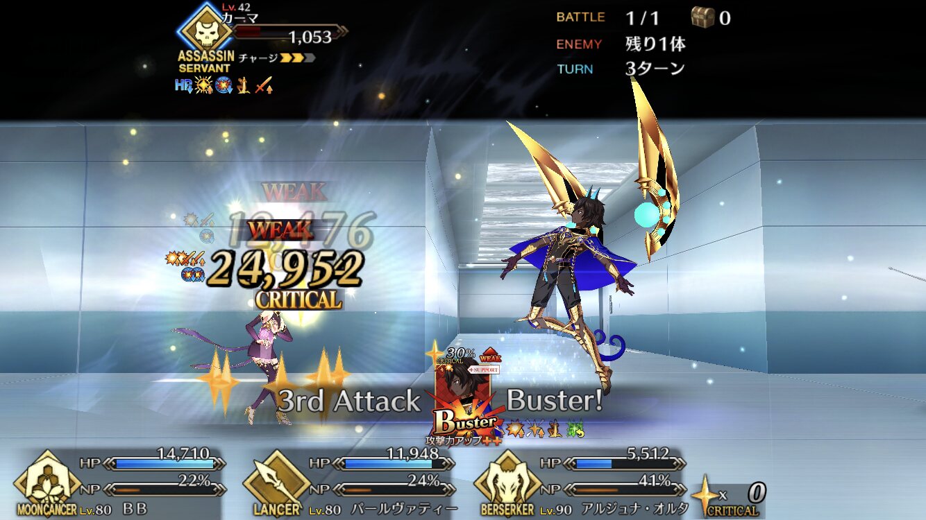 つーか弱体無効で強化解除さばけないのが納得いかん。なんとなく紅閻魔様のマイルーム会話聞いてたら、ナーサリーのこと気に入ってると知ってちょっと意外で驚いたわ