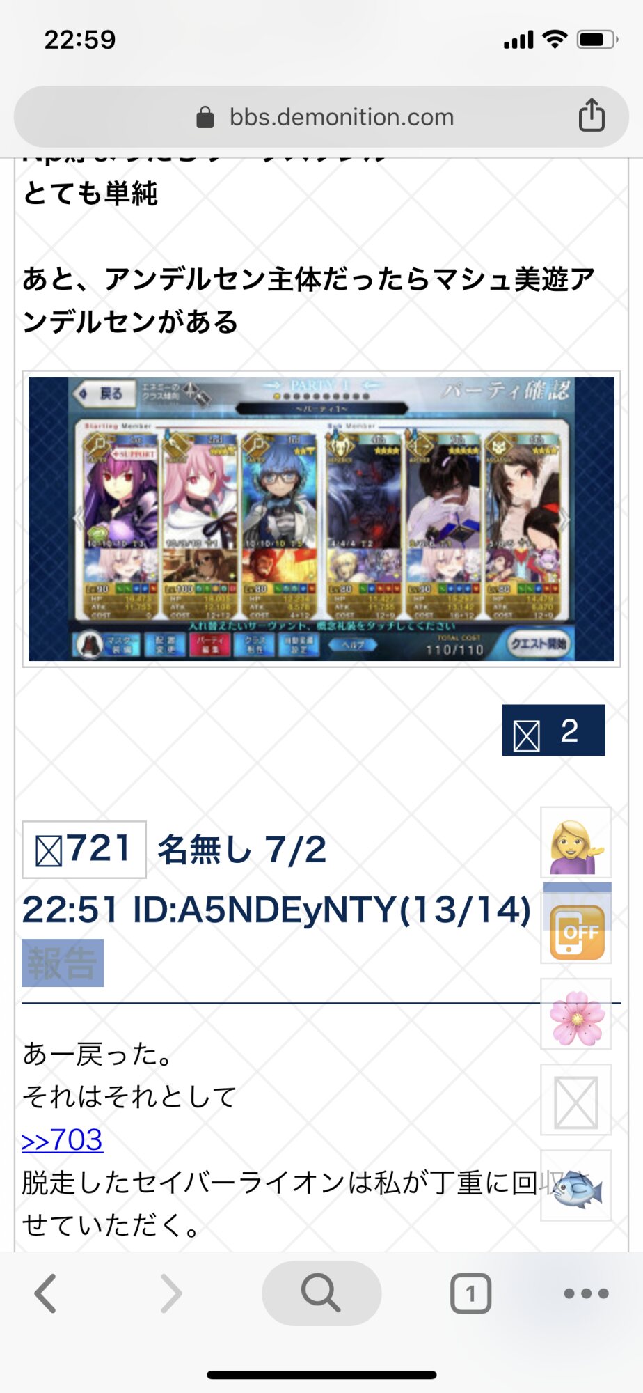 ヒルドとアンデルセン(と後衛)で自分の書き込みかな?と思ったら「マシュ美遊アンデルセン」でやっぱり自分の書き込みと確信したわ