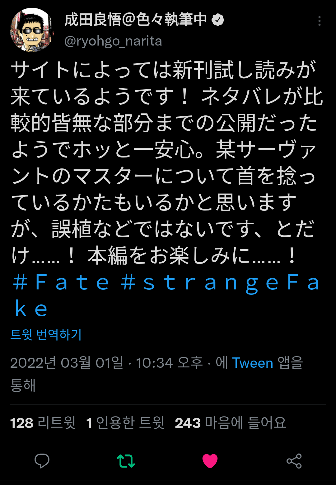 Fake初っ端でエルメロイ教室OBの名前挙げた時に出てるよ最新巻出る間に事件簿と冒険読んでてよかったわホント...
