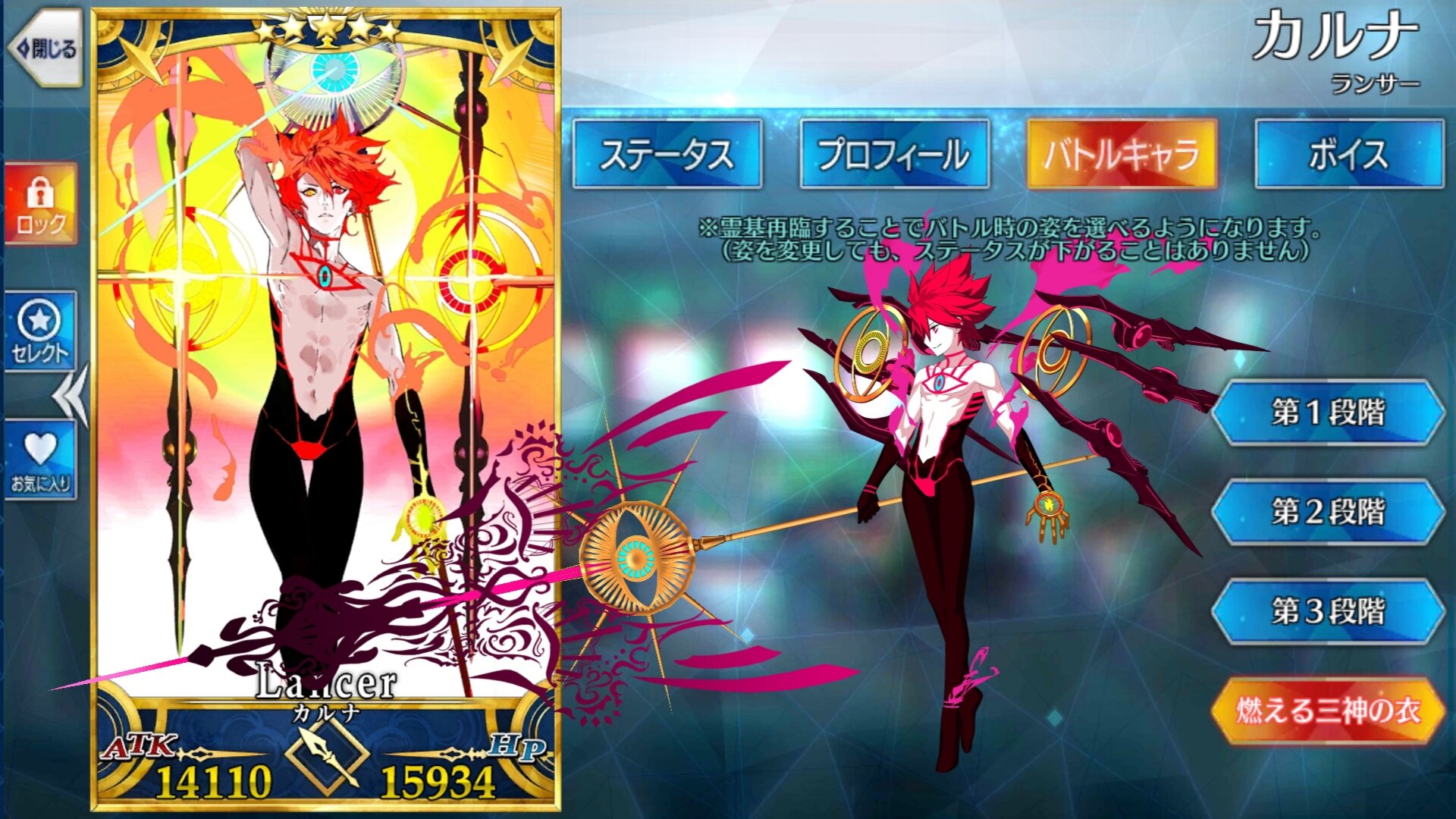 あと布がなんで赤から青に変わったのだろう?セイバーさんのカラーだから?カルナの宝具封印くらい通れば嬉しかったなって………