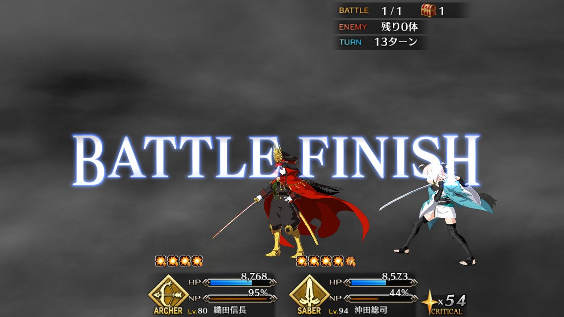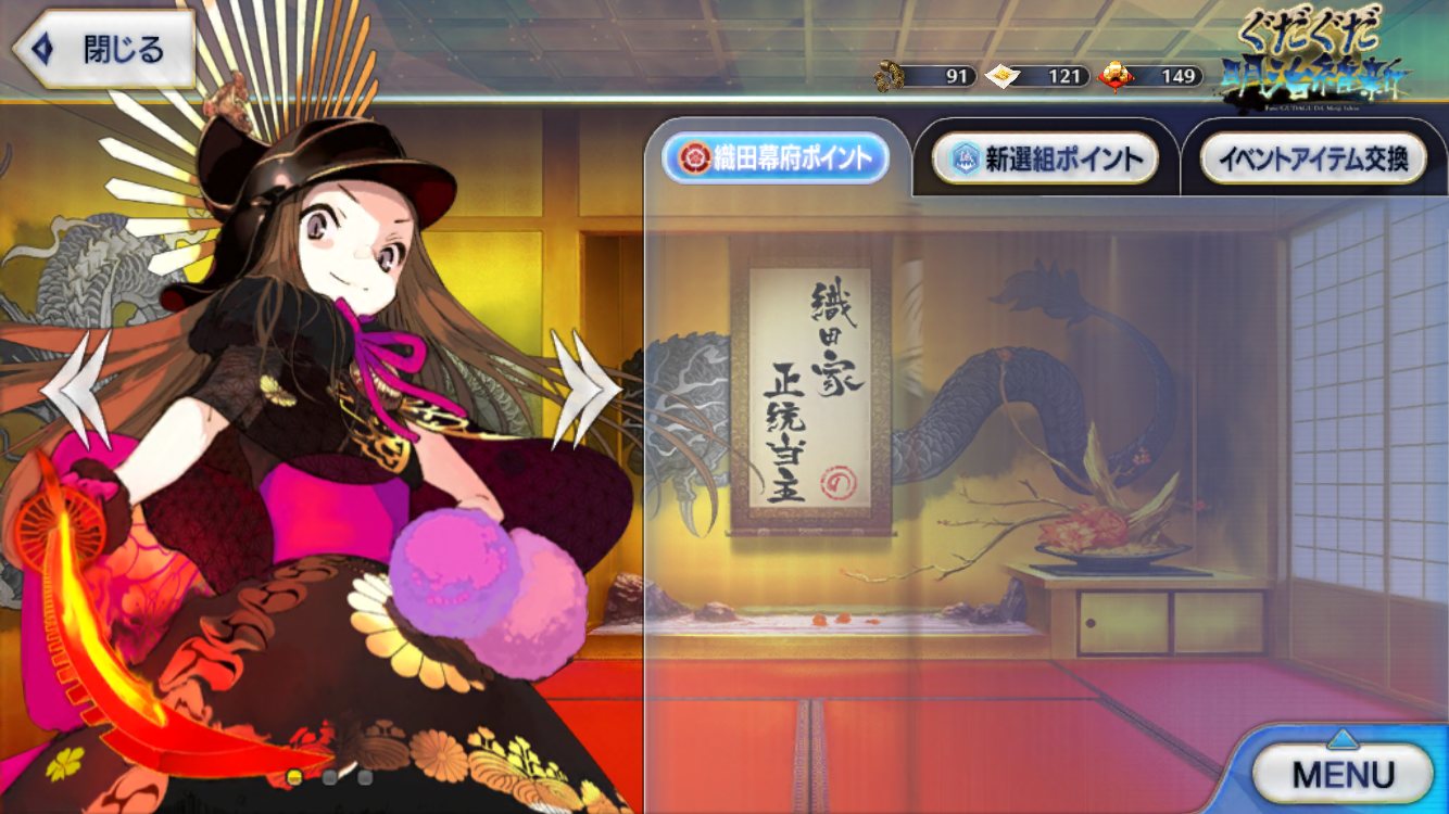 交換のボイスも3人変わっててホントに終わったんやなって新撰組のほうばっかやって織田が50万までしかいけず再臨素材全てとれなかったのが心残り