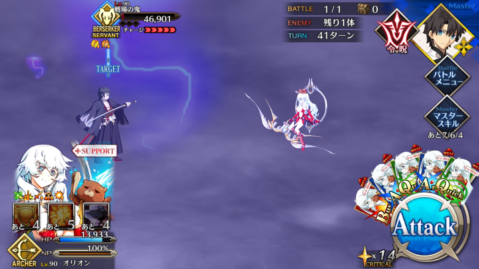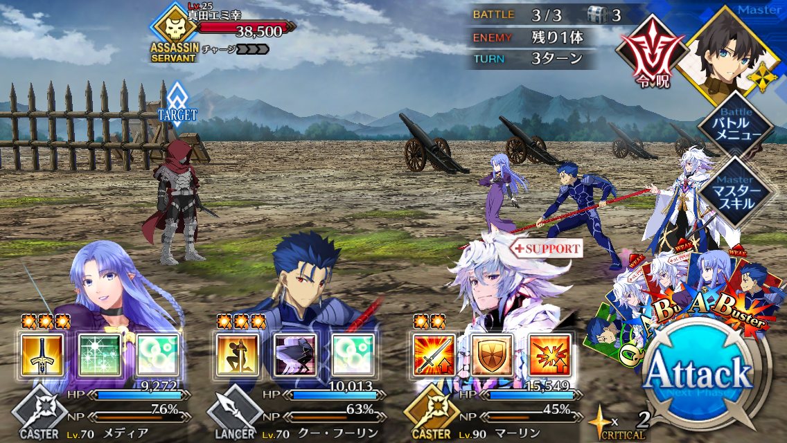 今回は敵がバサカだからどの鯖でも挑めるし、単騎もやりやすい内容だからやったことない人は是非試してみて欲しいな70万Ptの両陣営報酬で呼符2枚貰ったから適当に回したら1枚目でキャス子さんが来たんだ