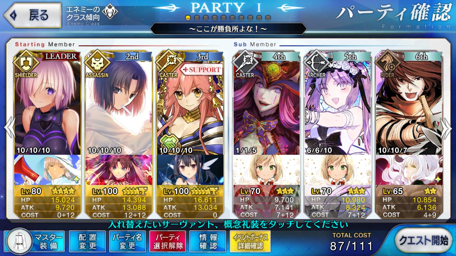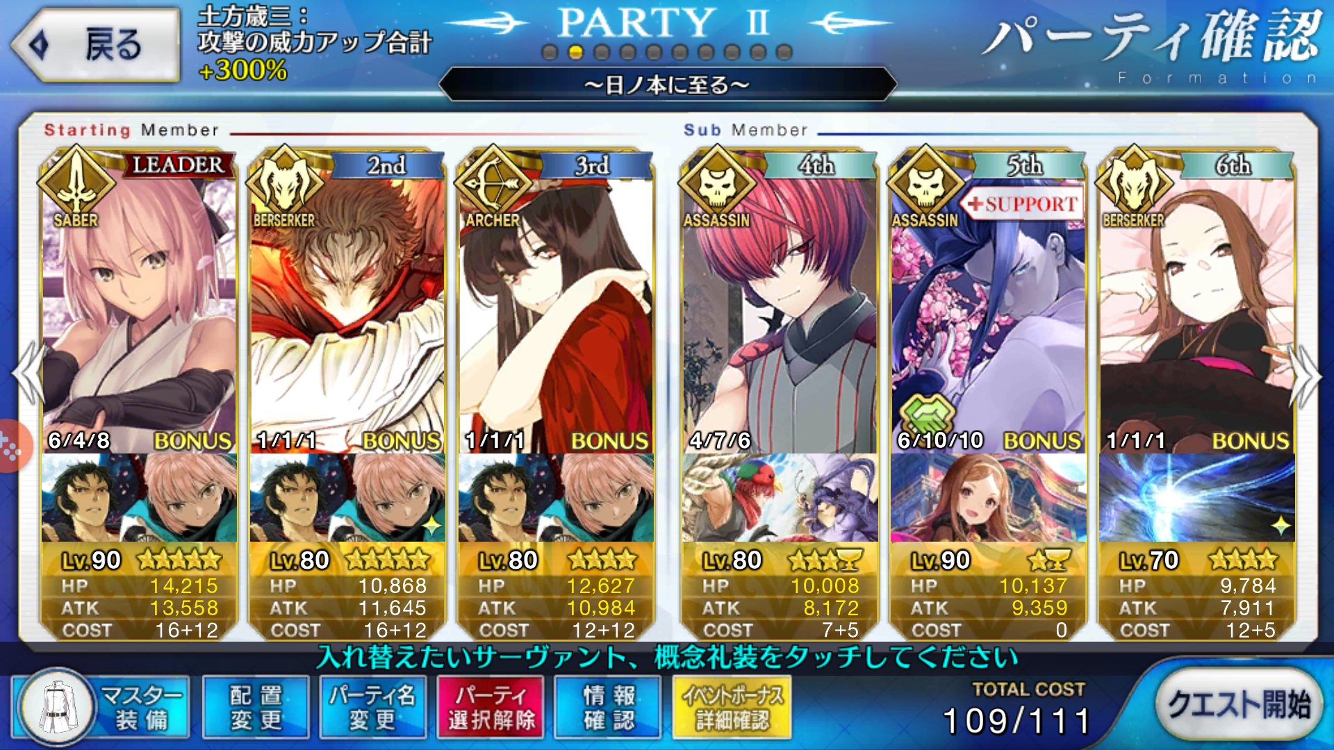 よし、これで逝こう!!日輪礼装外したほうが長く狩れるぞ!