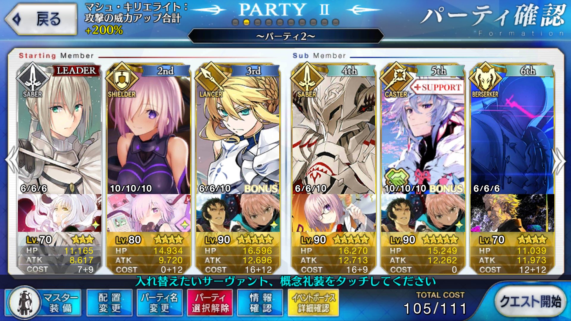 なお前提として凸カレと限定金鯖二人に恒常星5と高スキレベを要求する重課金パーティの模様