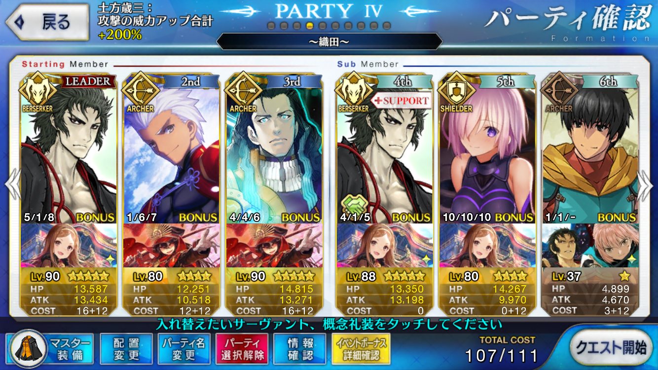 のんびりしすぎた・・・対土方でガチのPT、礼装構成を考えまくった挙句に壬生狼を積み忘れてむっちゃ苦戦した
