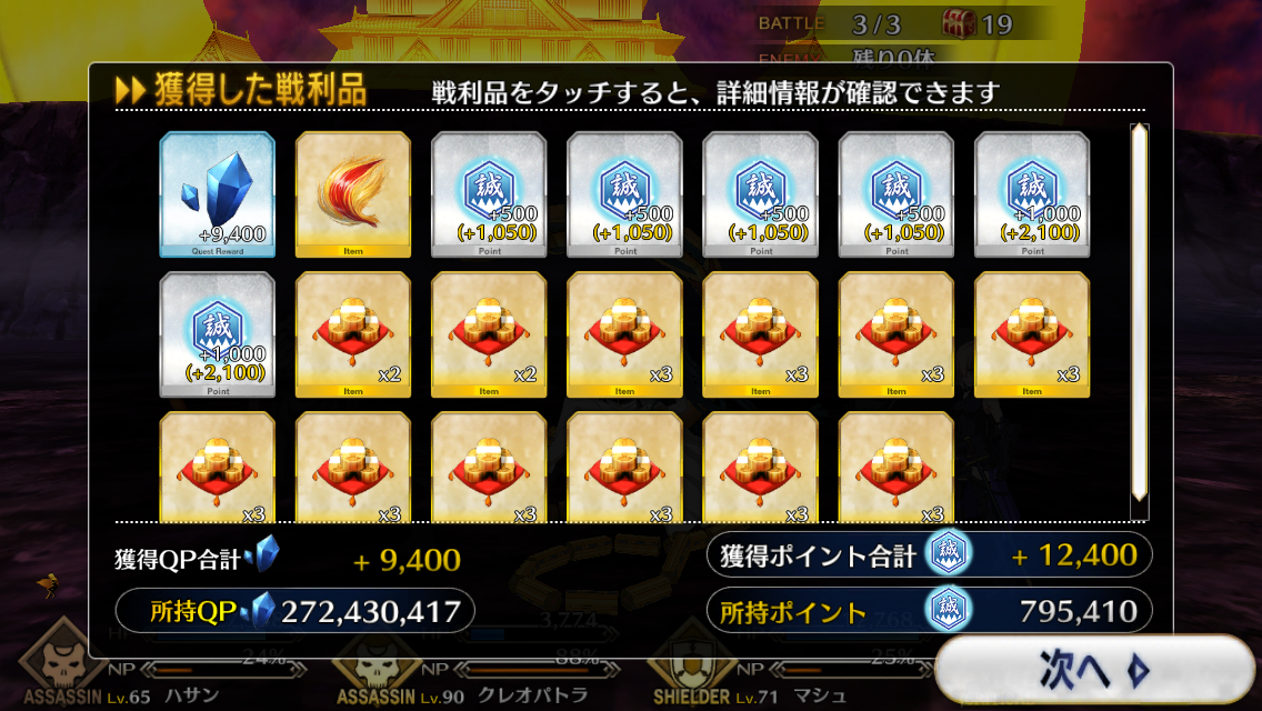 正直かなりキツイが礼装がん積みでいけるやもしれん今回は時間もあったし、素材狩りが捗った