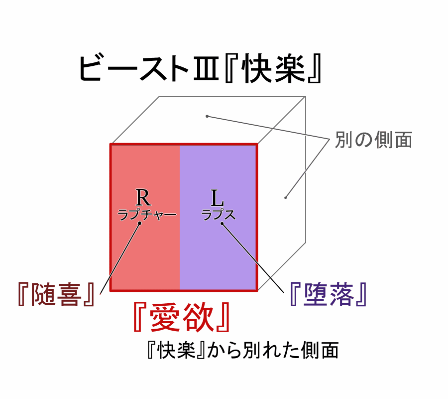 ビーストⅢは『愛欲』だって断言されてんのに持論ごり押しやめろいや、確認してきたけど確かに本人が「快楽」の獣って言ってるね。