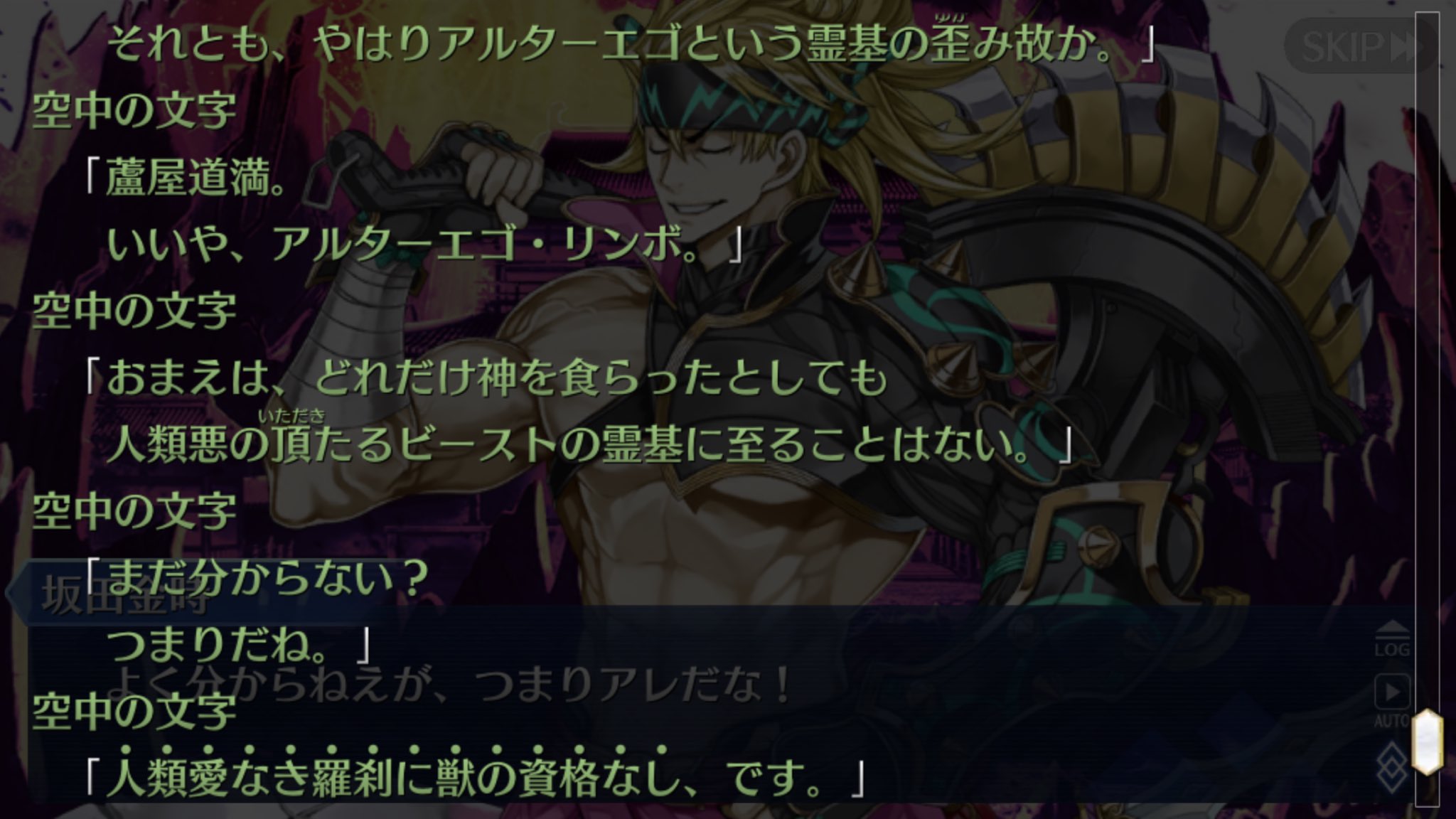 どちらが真の王にしろ「回帰」の理が人から取り上げられ王がそれを背負っているという解釈は成り立つな>>55 己のみを人と認める一点(のみ)がキアラと似てるし朕にも獣性は有るだろう。でもなあどうしても“人に「類」も「間」も要らぬ”って表現が引っかかる