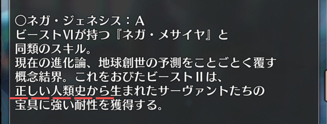 あの人が原罪を持ち去ったって点にも繋がってくるかネガ・ジェネシスの概念結界、アルファメガ・ノギウスが全ての冠位指定にかかってるかいまいち判断つかないように、全てのネガスキルが概念結界であるか判断し辛いな