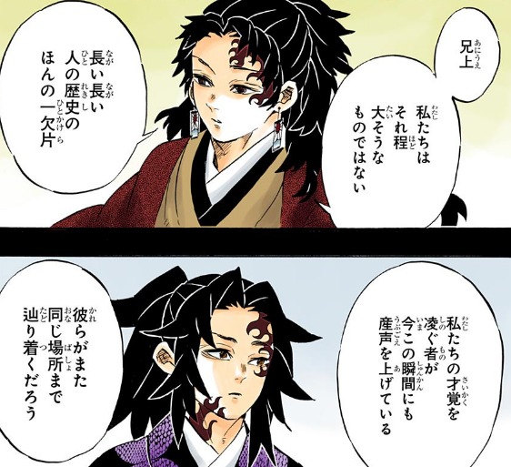 やはりシリアスはだせなかったかどうでもいいが、無一朗が赤刀にたどり着いただけでもわめき散らした兄上が、今、【縁壱が言った通りに】三人も赤刀に目覚めた所なんかみたら発狂するんじゃなかろうか