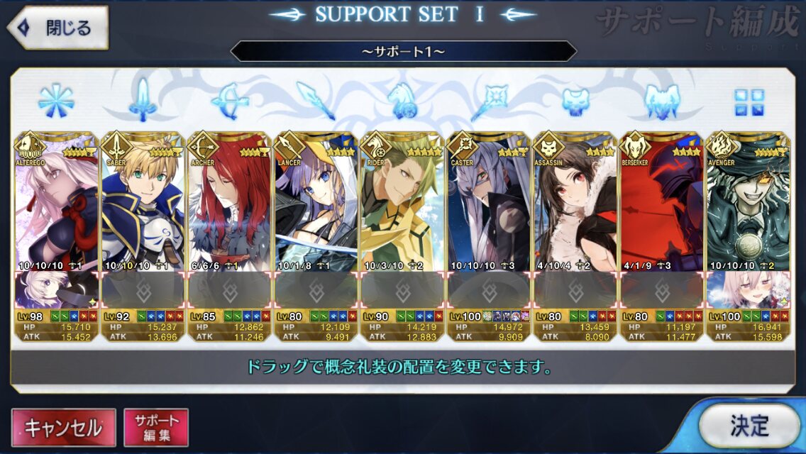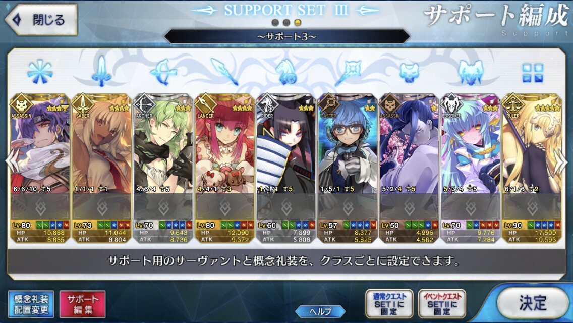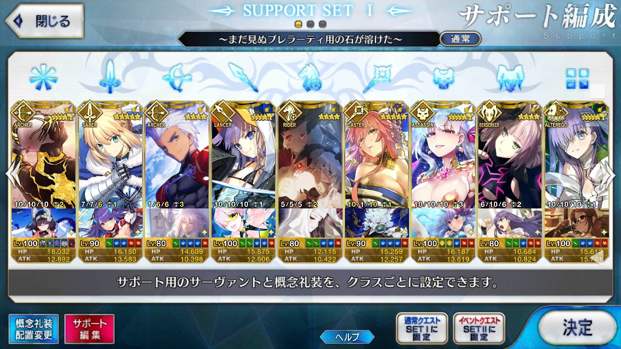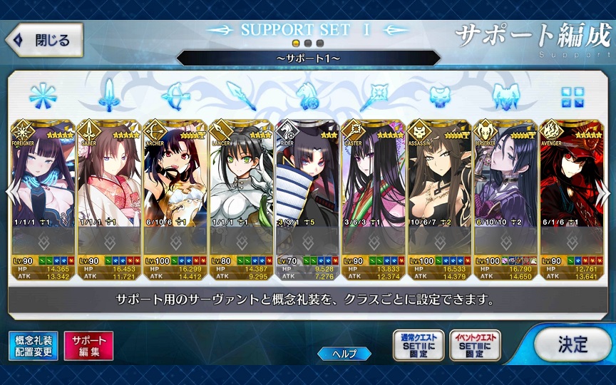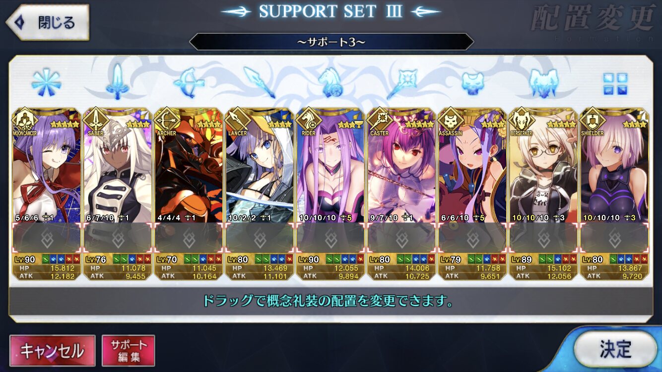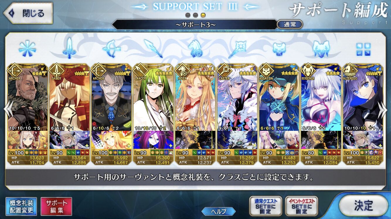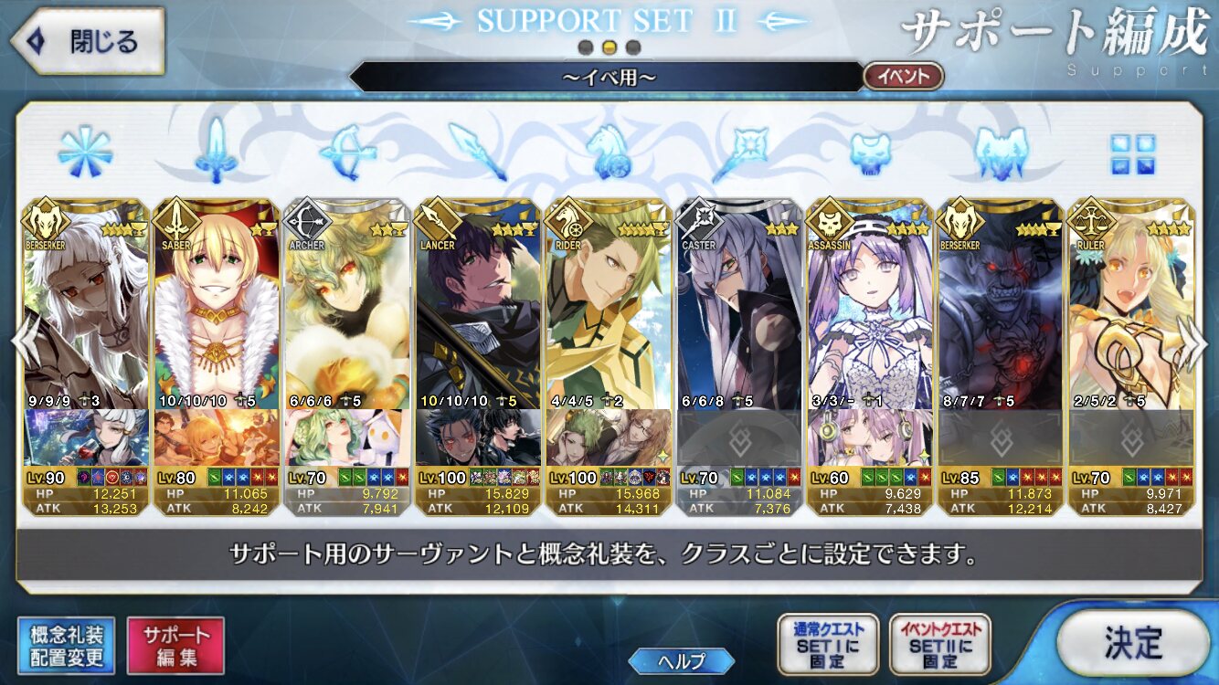 個人的にサポートの育成度合いは気にならんけどLv1すら置かずに空だったり礼装が数個前のイベントのままだったりするとちょっと…ってなるな
