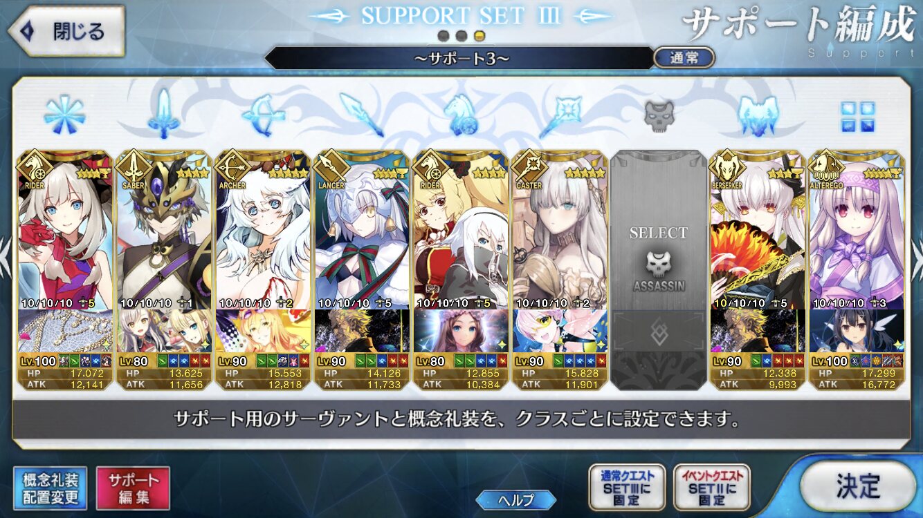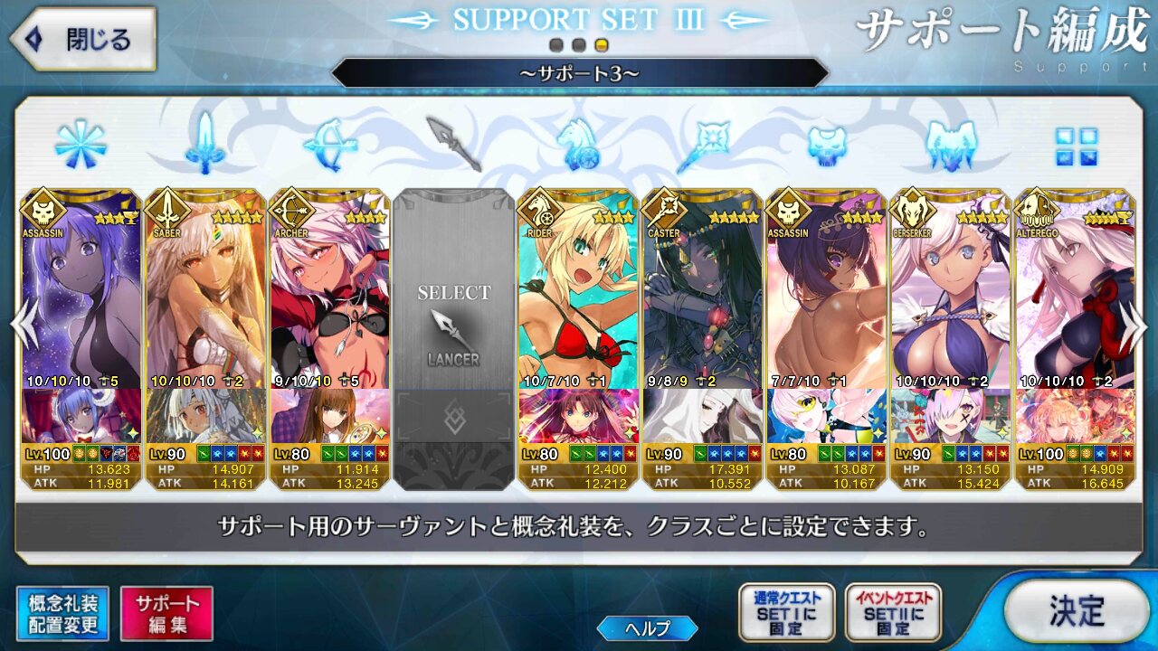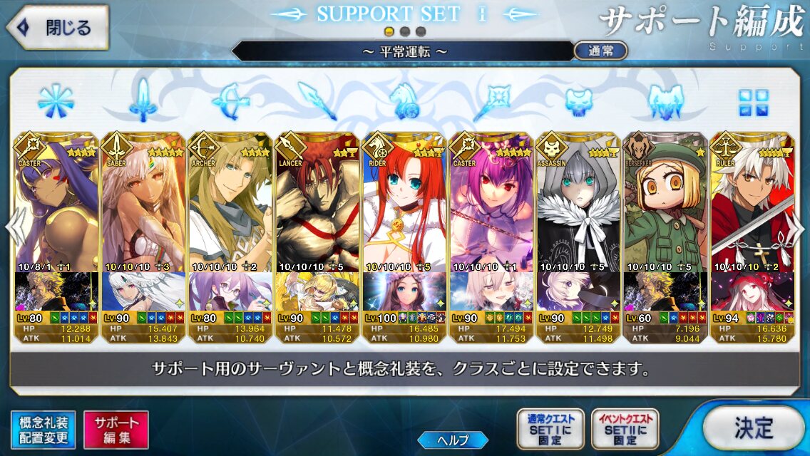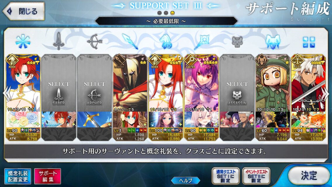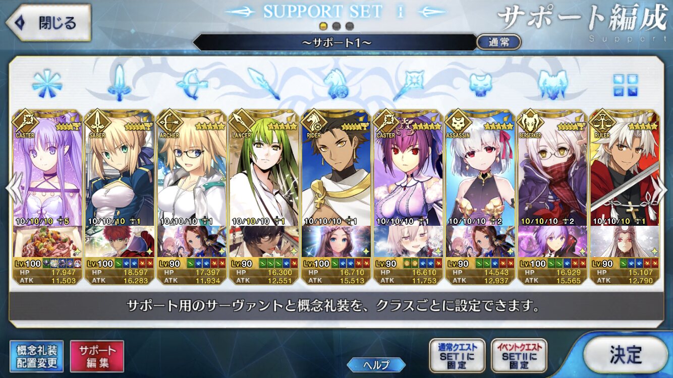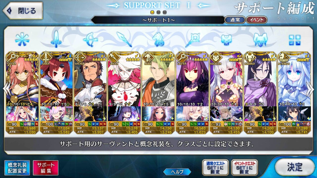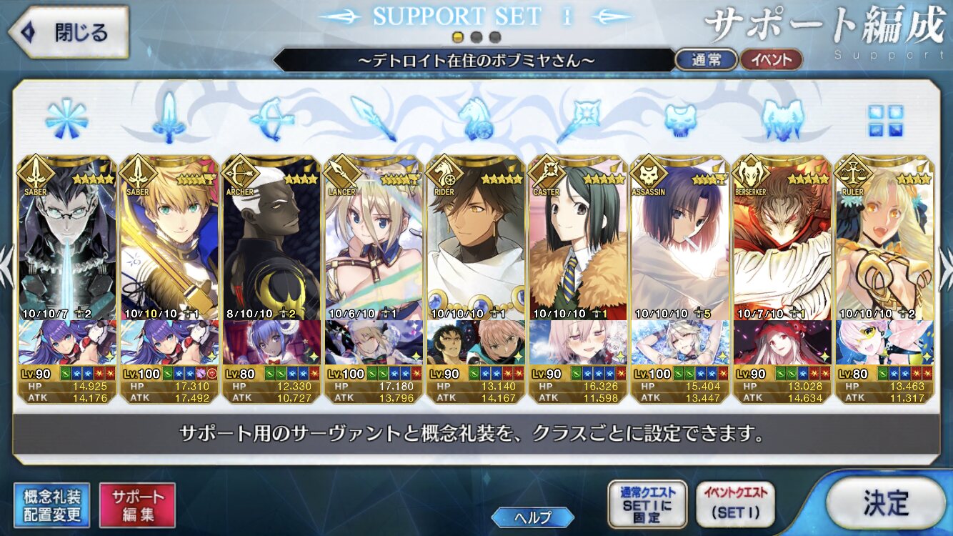 個人的にサポートの育成度合いは気にならんけどLv1すら置かずに空だったり礼装が数個前のイベントのままだったりするとちょっと…ってなるな