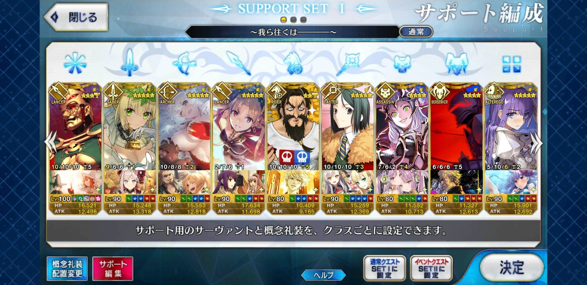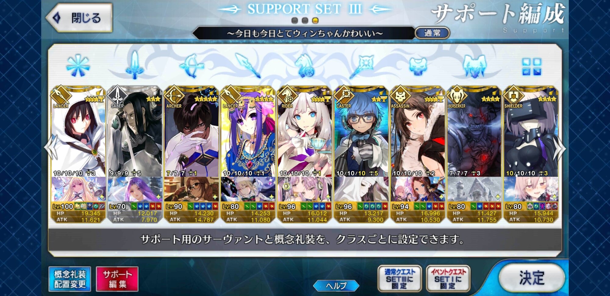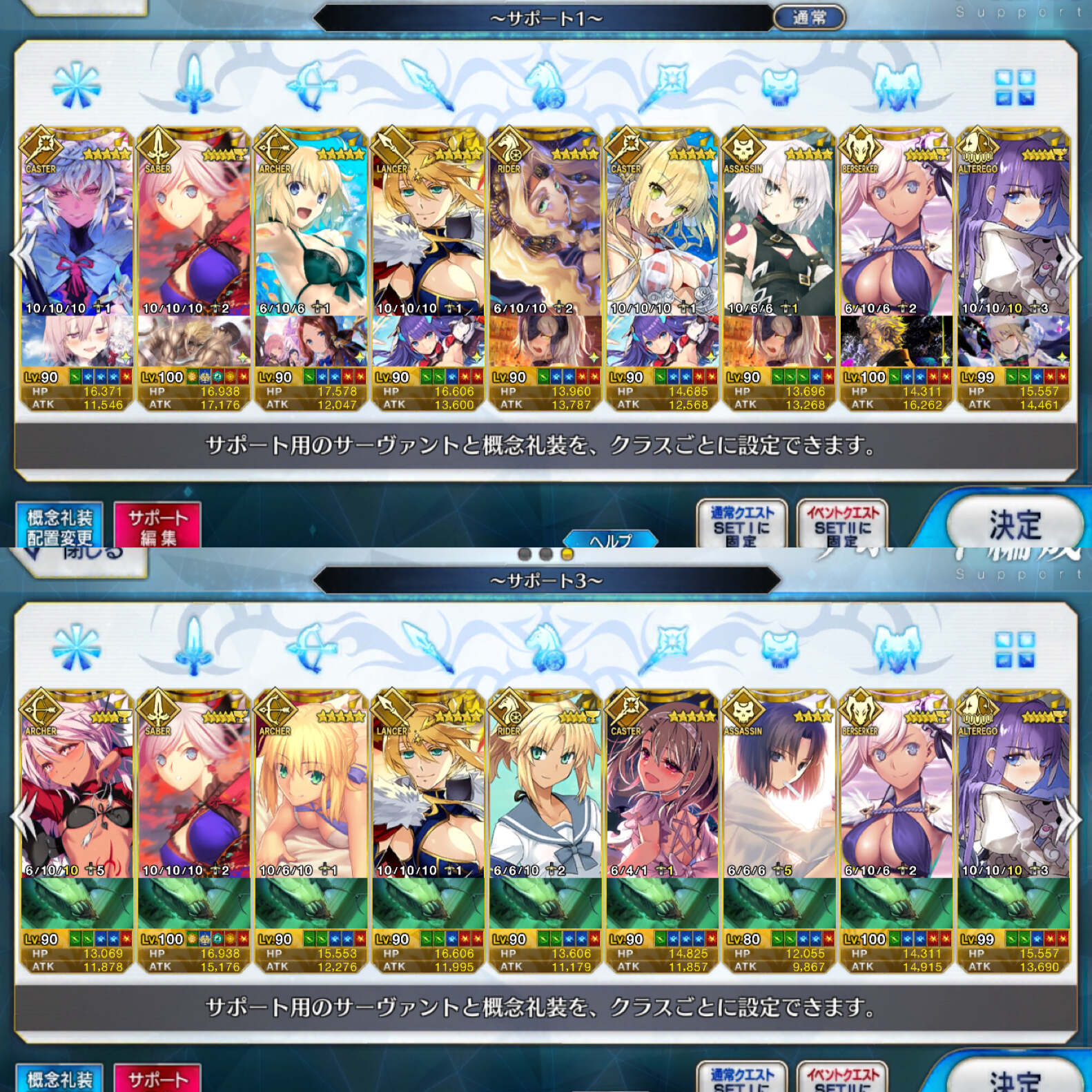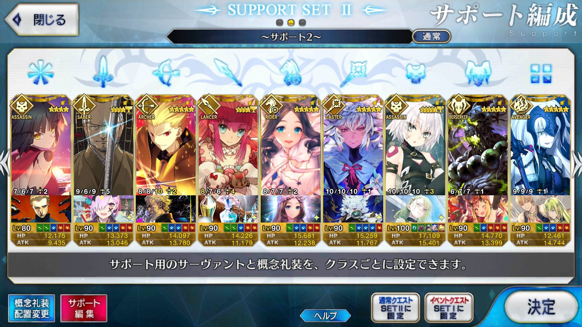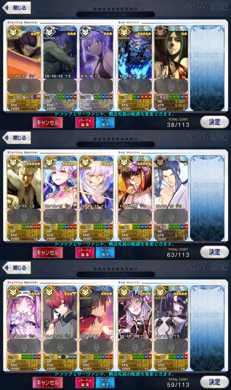 個人的にサポートの育成度合いは気にならんけどLv1すら置かずに空だったり礼装が数個前のイベントのままだったりするとちょっと…ってなるな