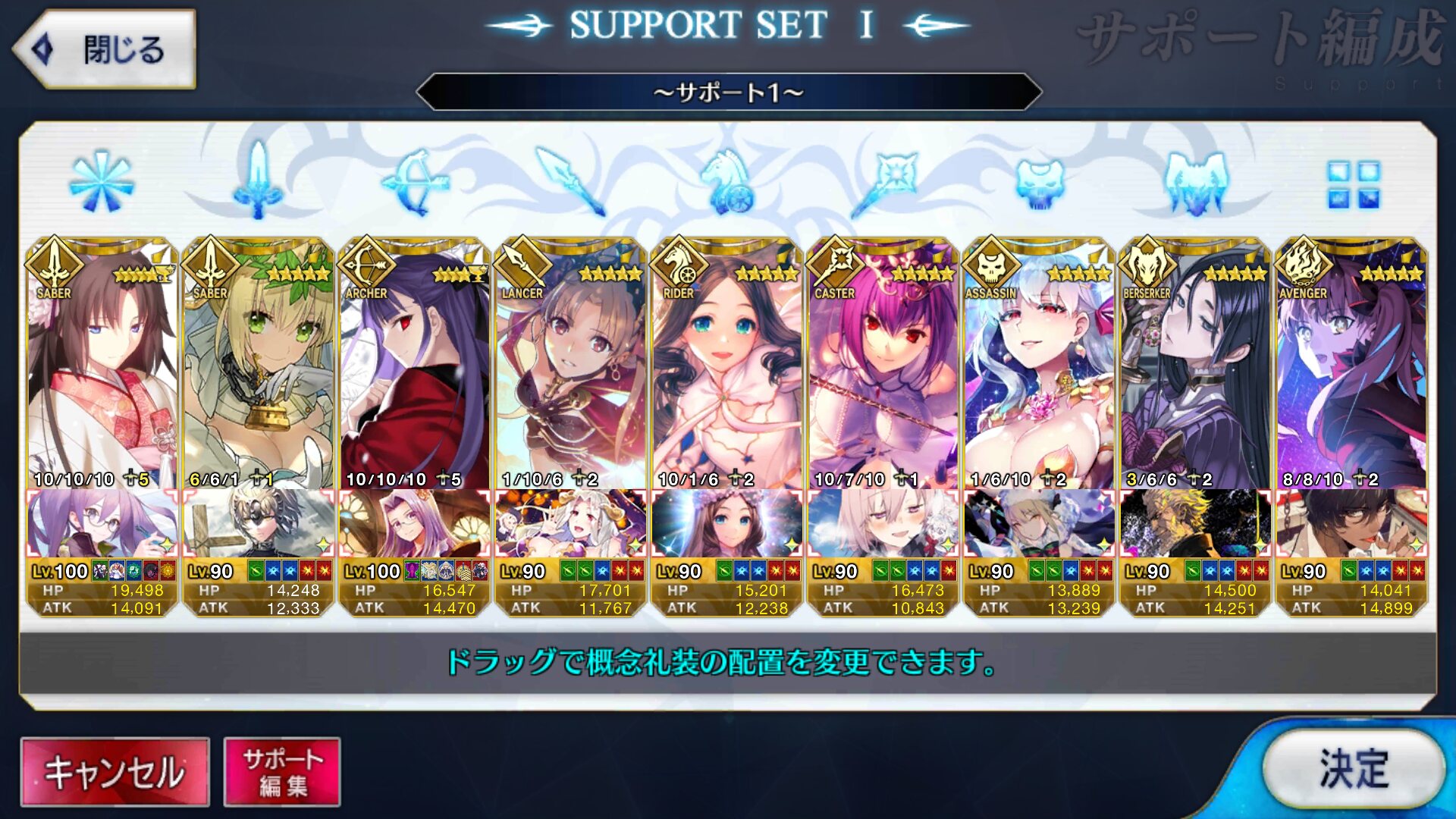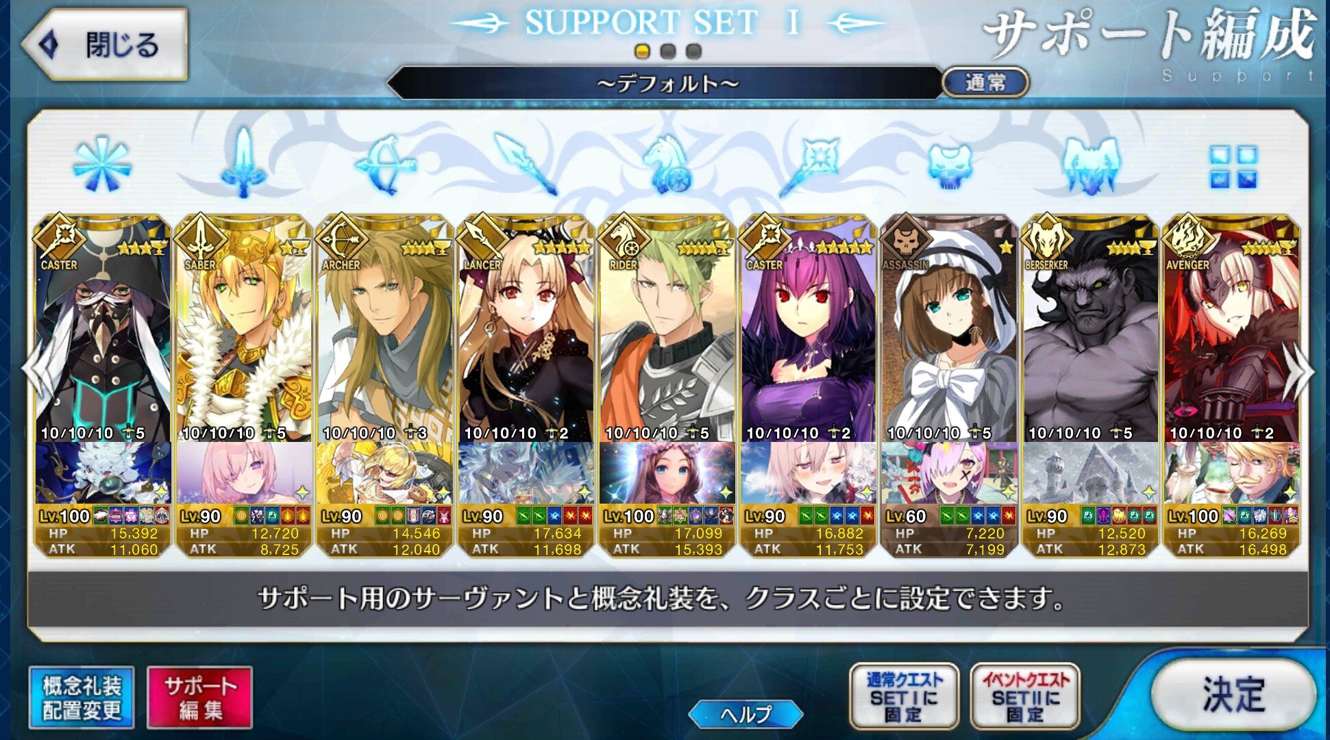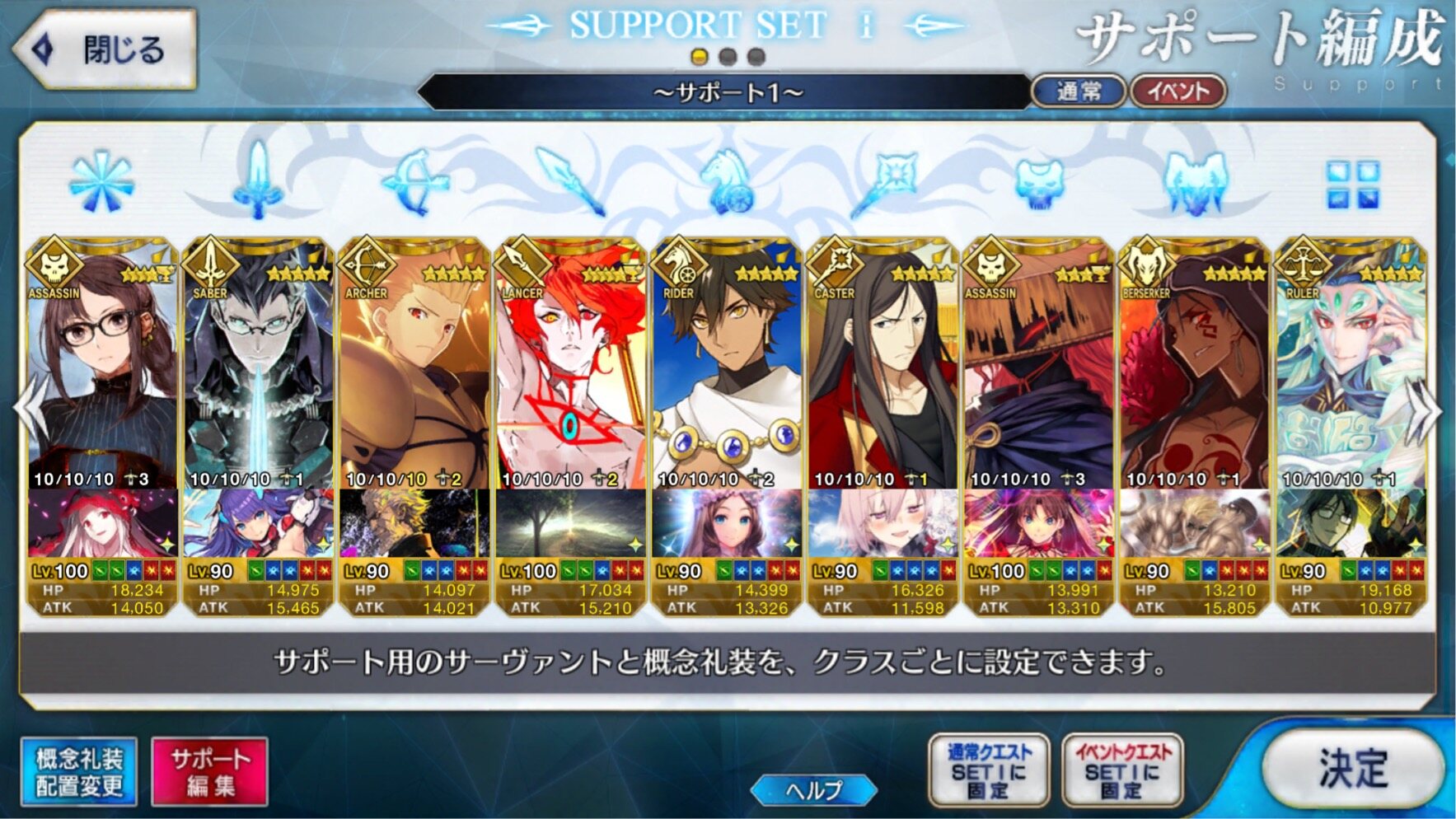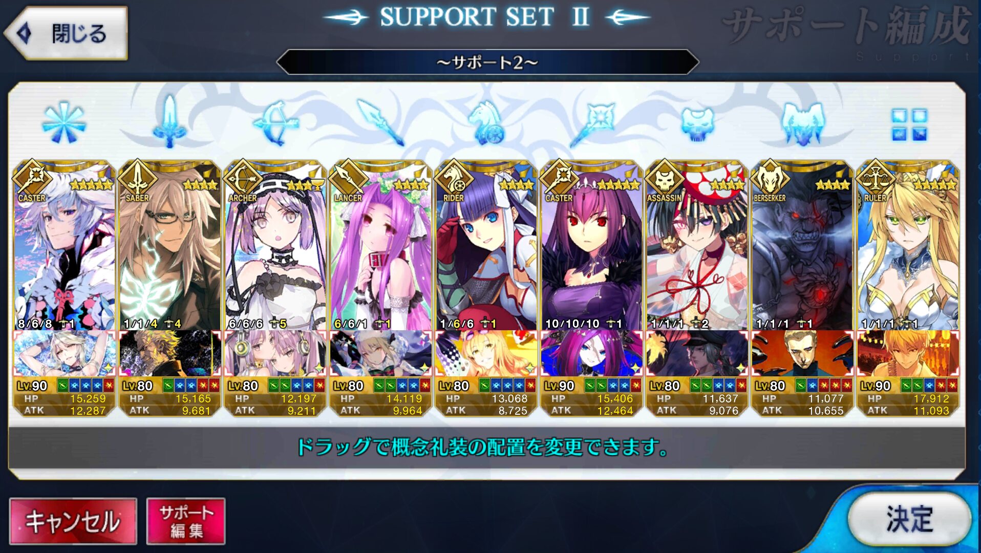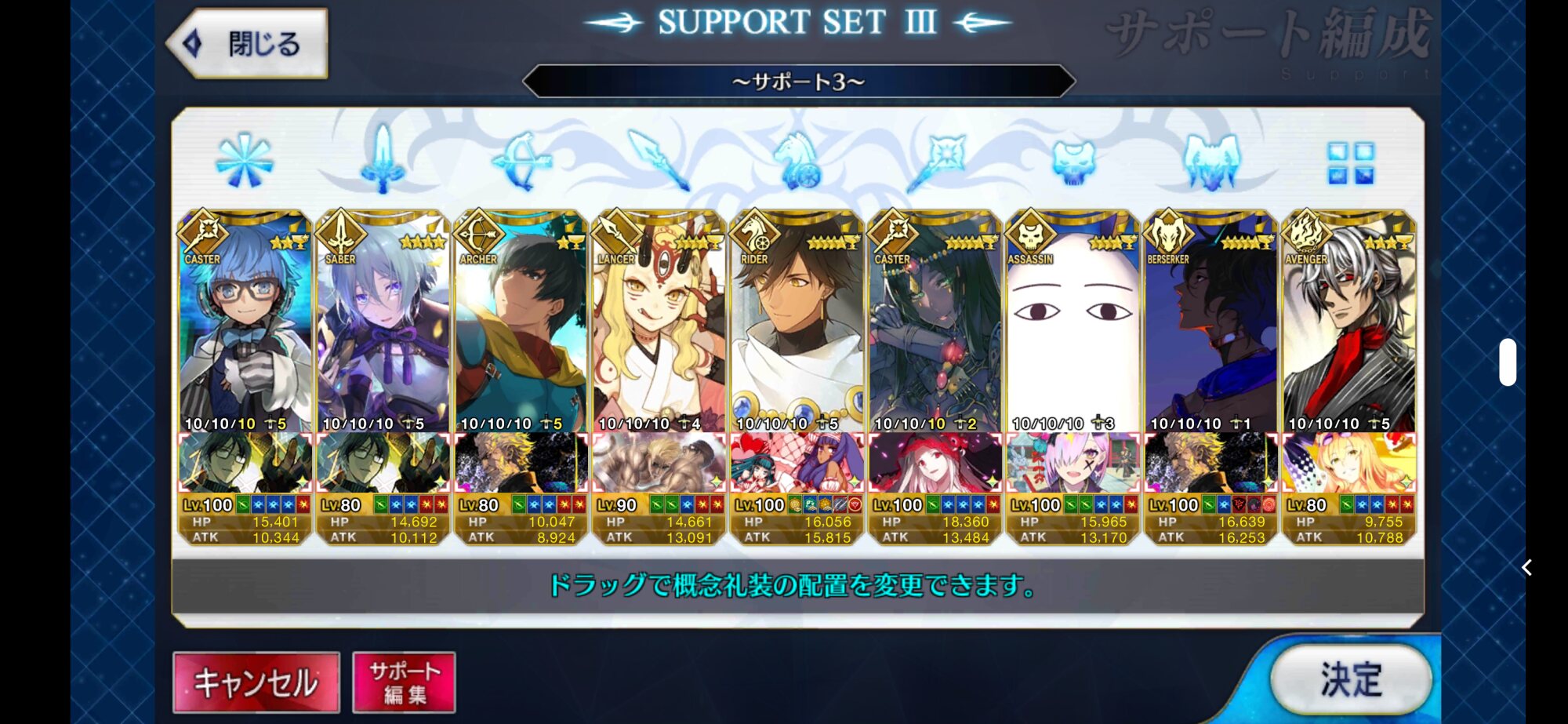 個人的にサポートの育成度合いは気にならんけどLv1すら置かずに空だったり礼装が数個前のイベントのままだったりするとちょっと…ってなるな