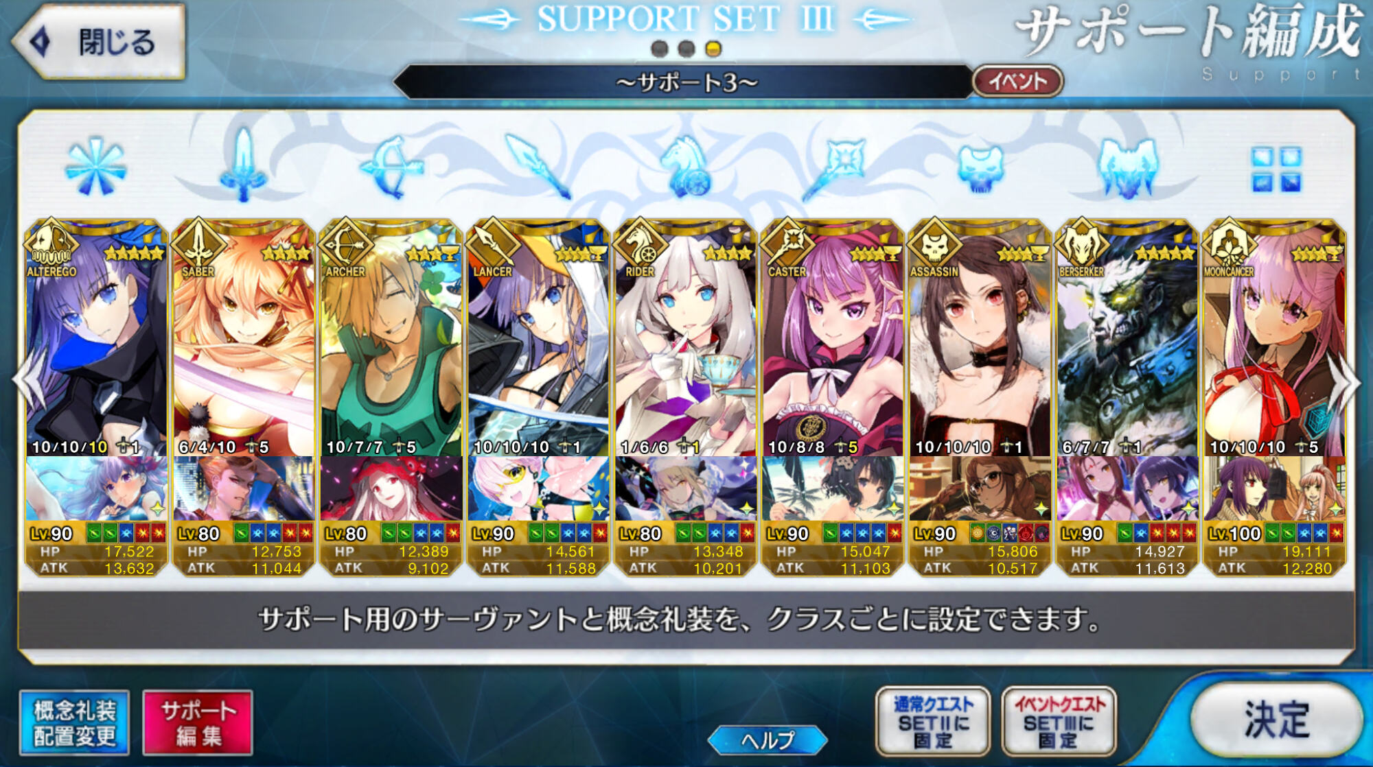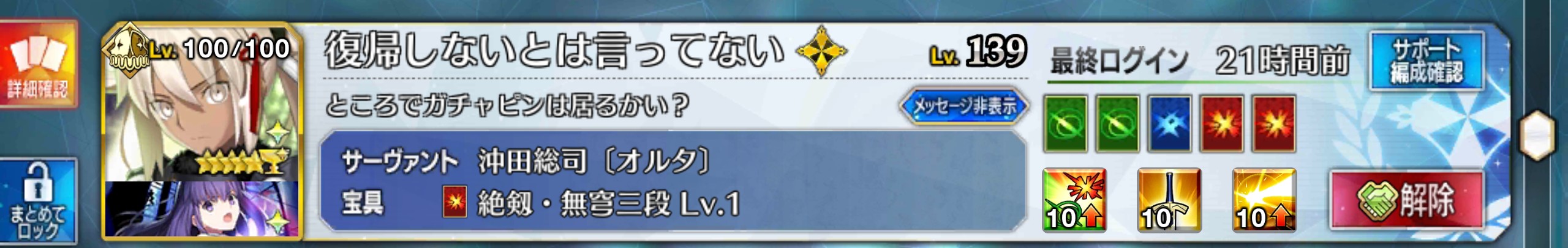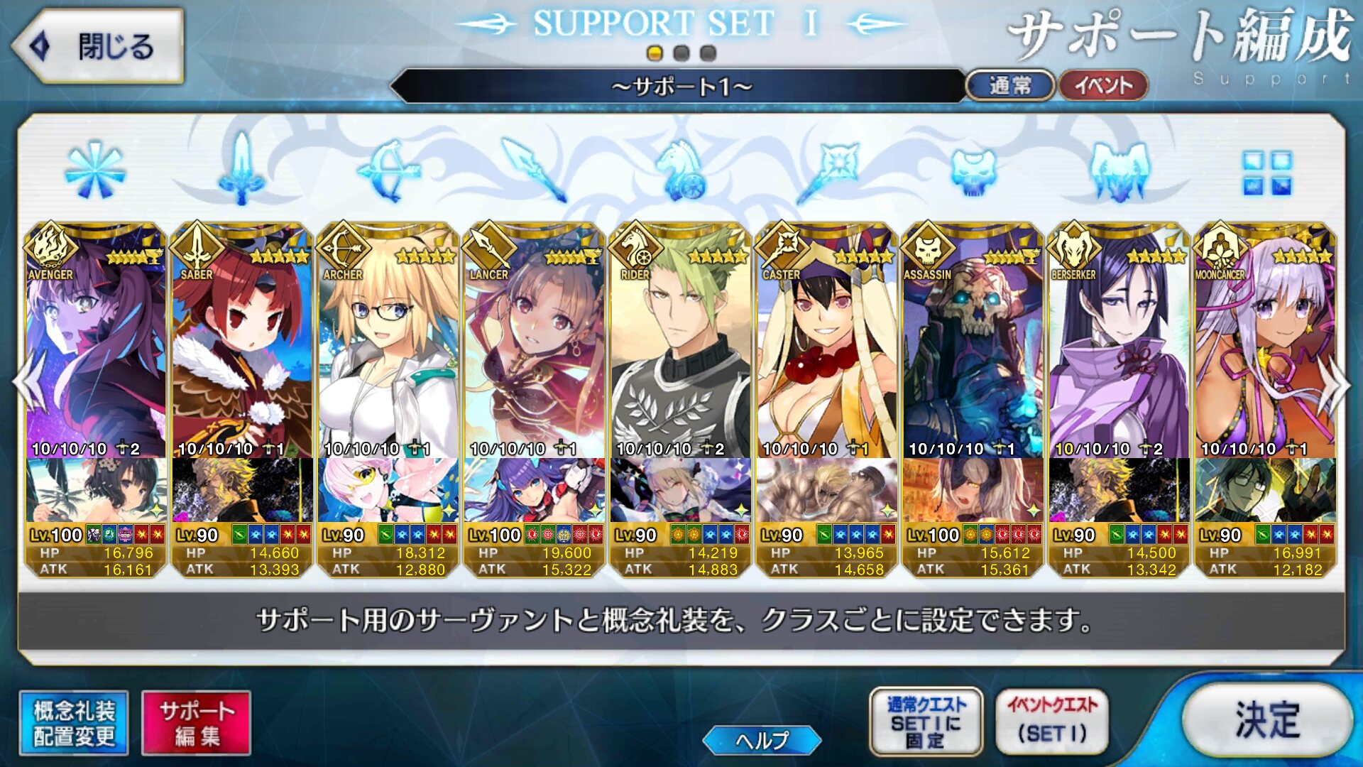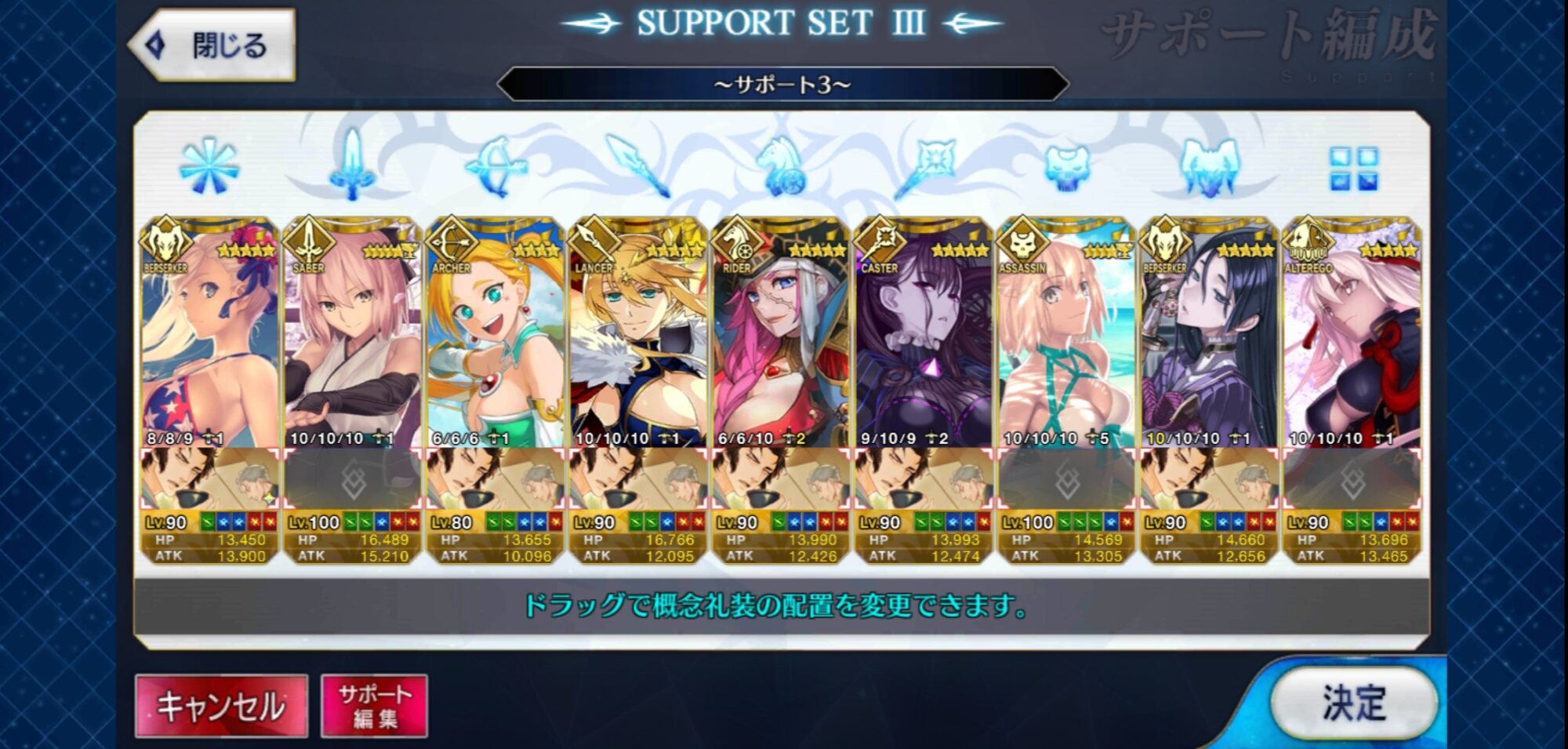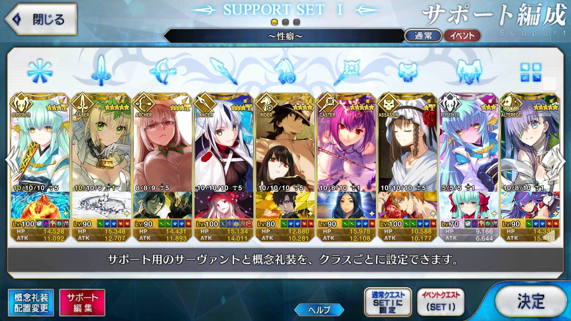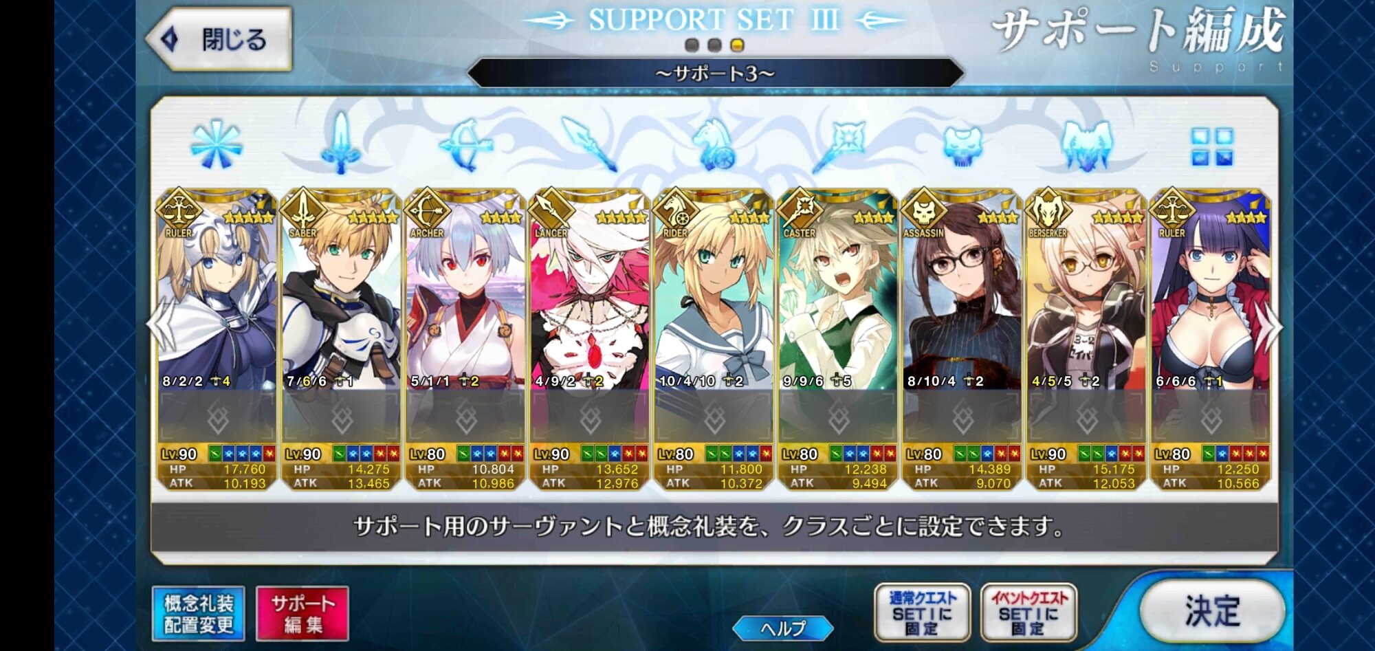 個人的にサポートの育成度合いは気にならんけどLv1すら置かずに空だったり礼装が数個前のイベントのままだったりするとちょっと…ってなるな