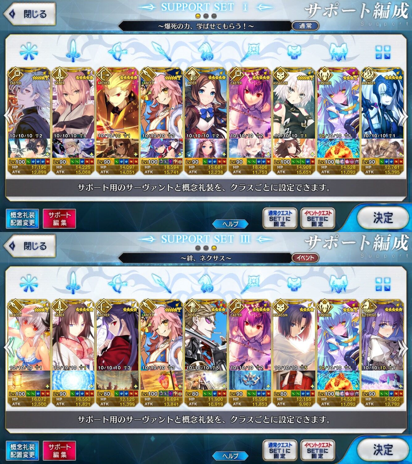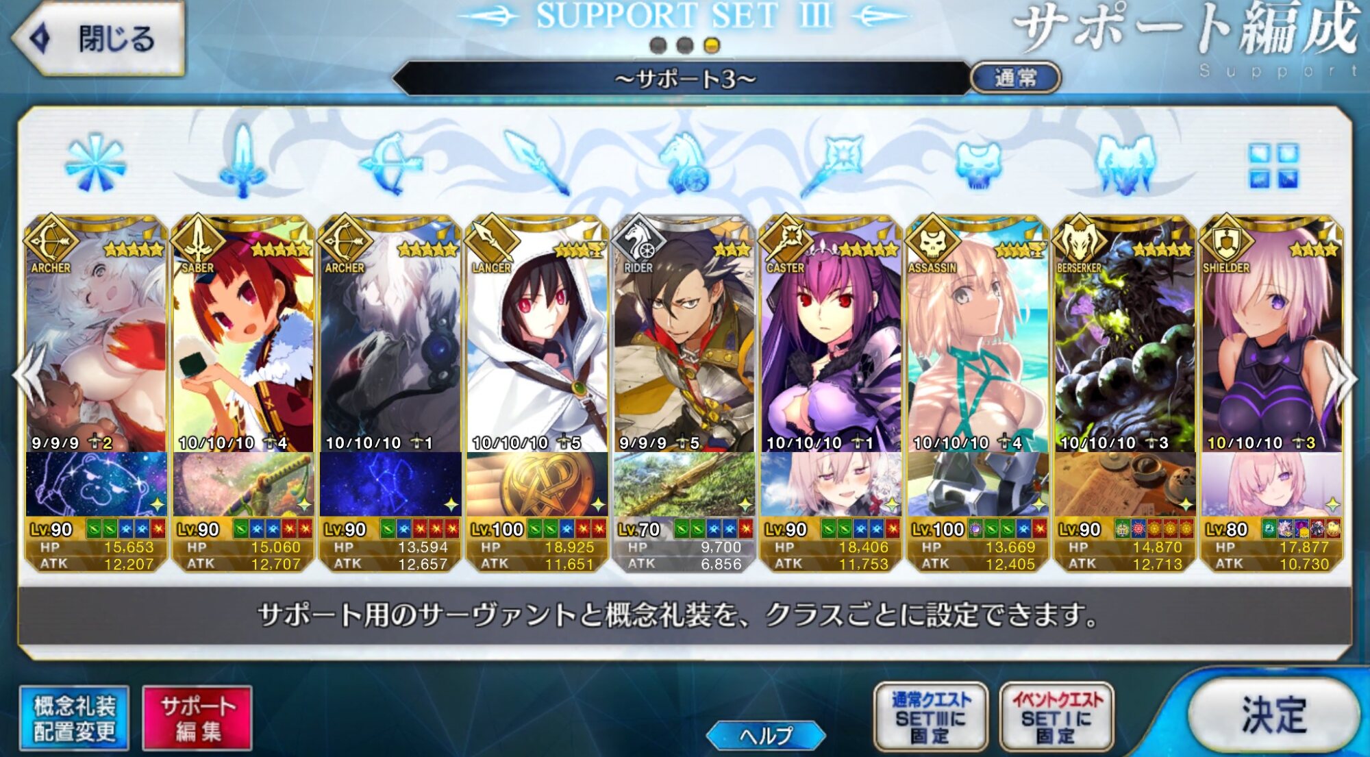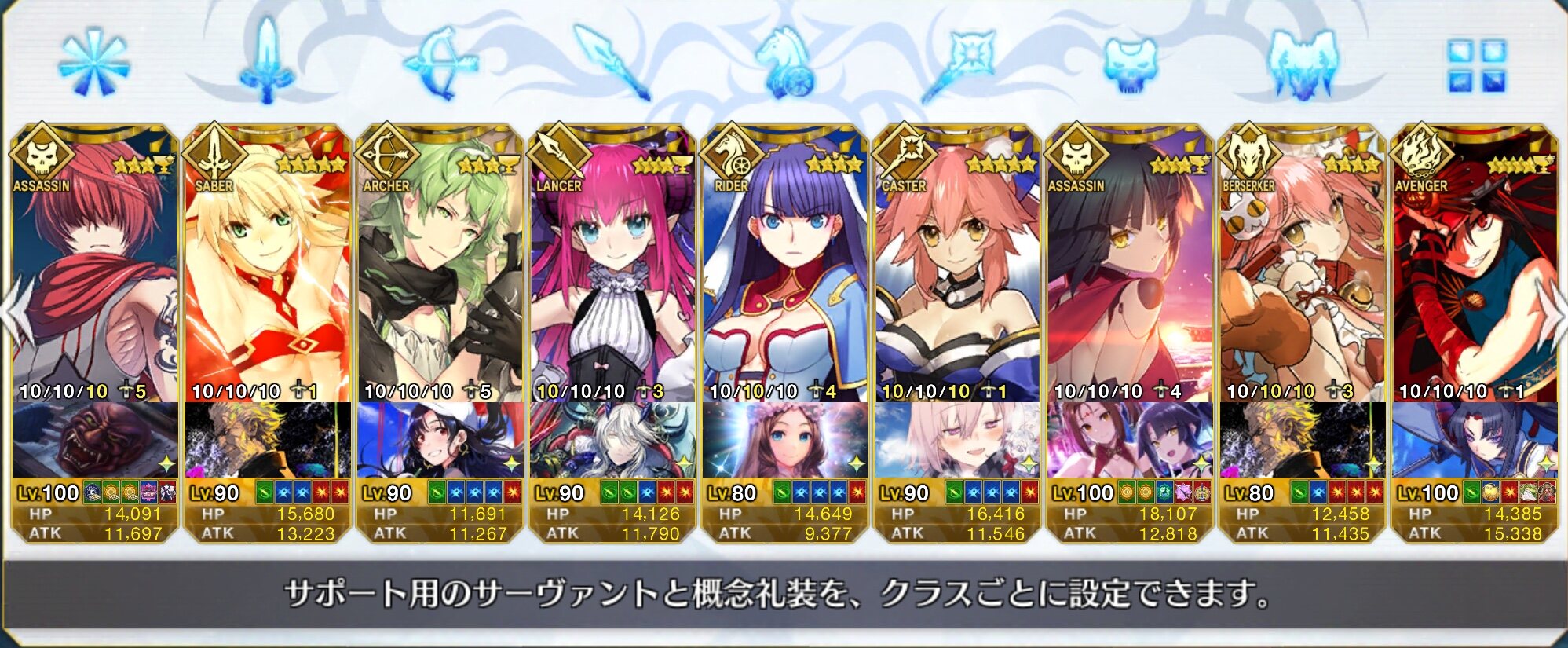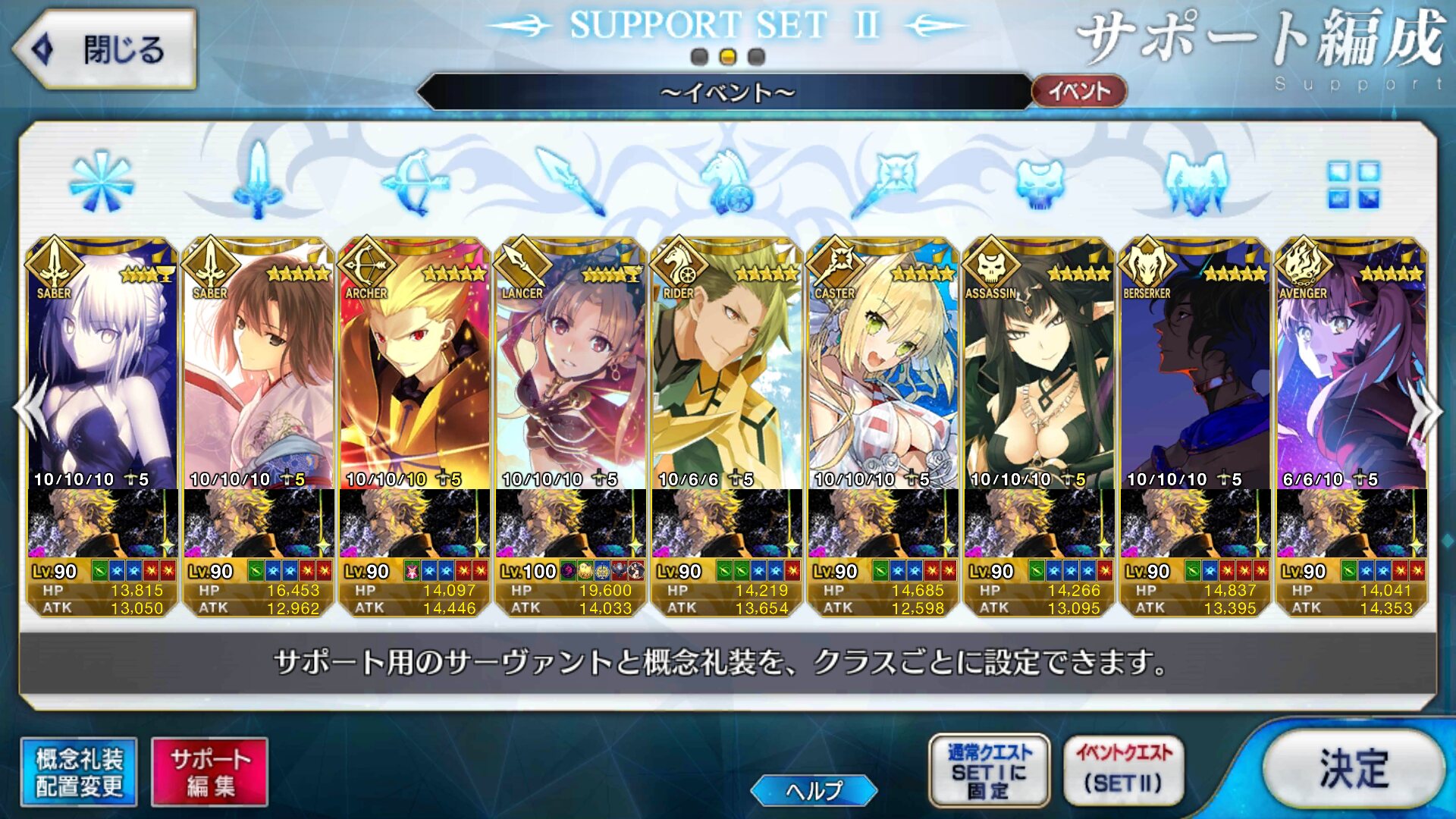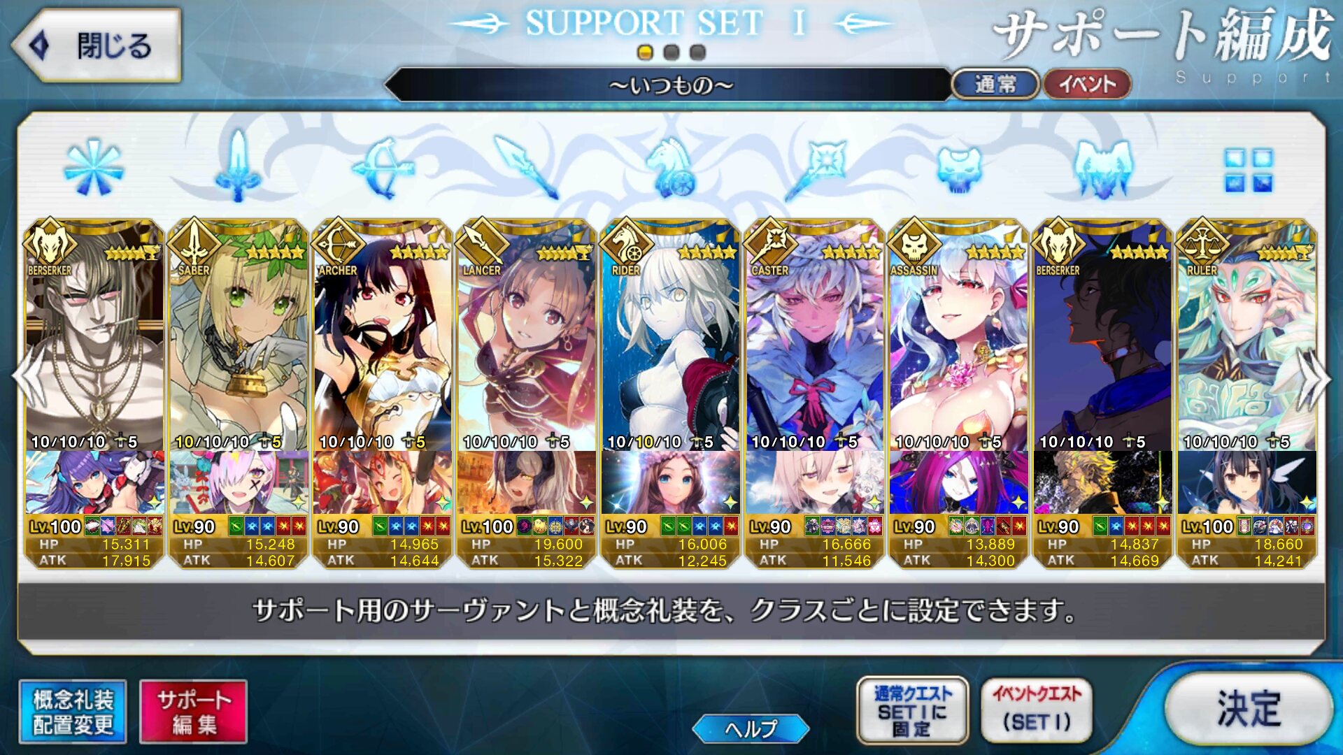 個人的にサポートの育成度合いは気にならんけどLv1すら置かずに空だったり礼装が数個前のイベントのままだったりするとちょっと…ってなるな