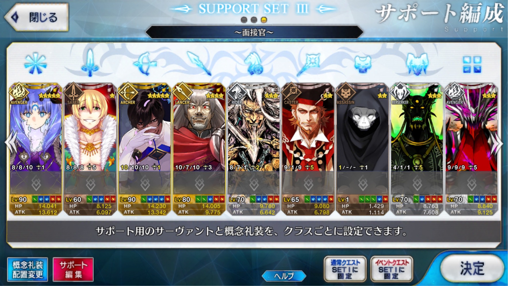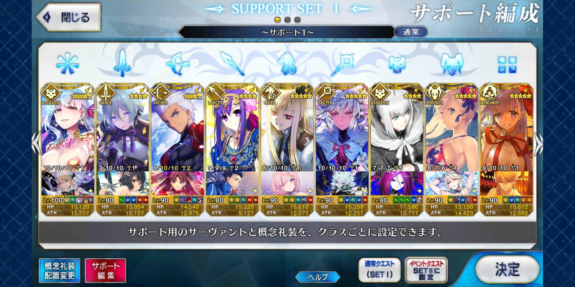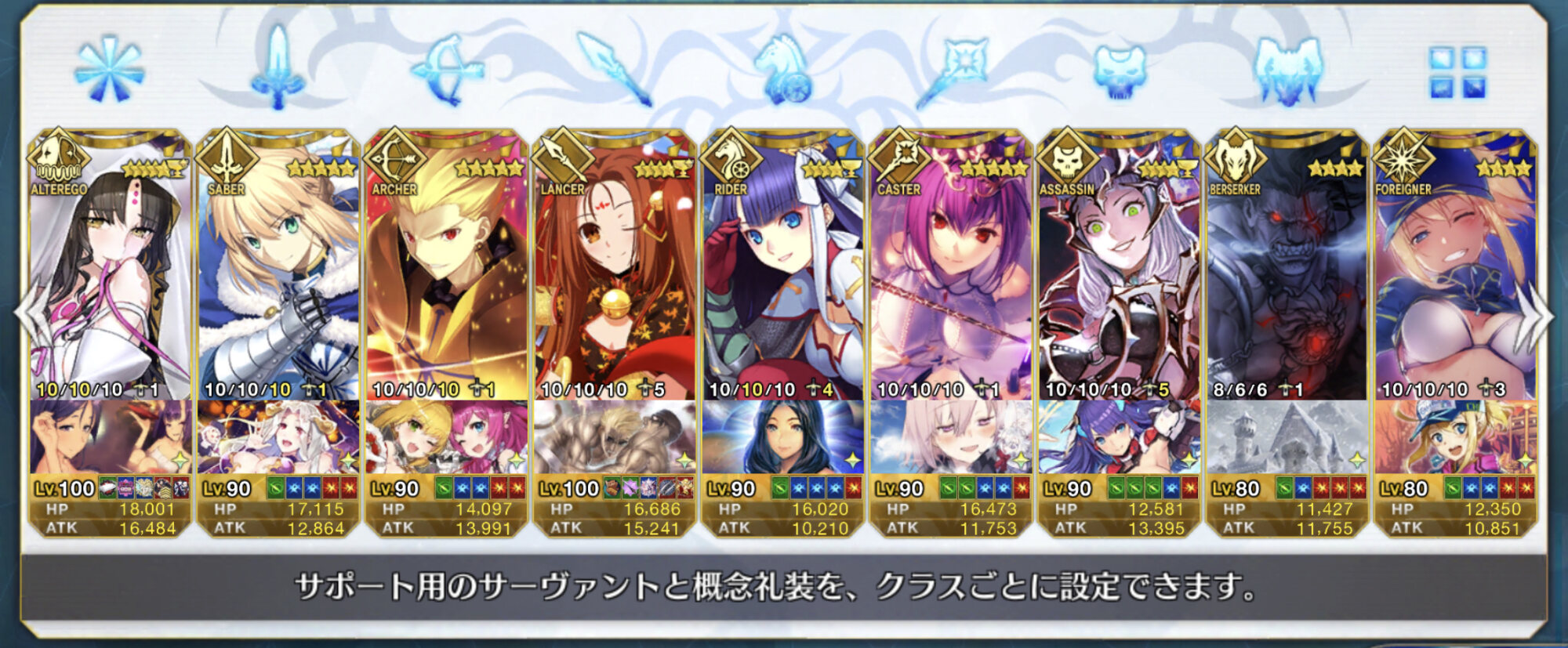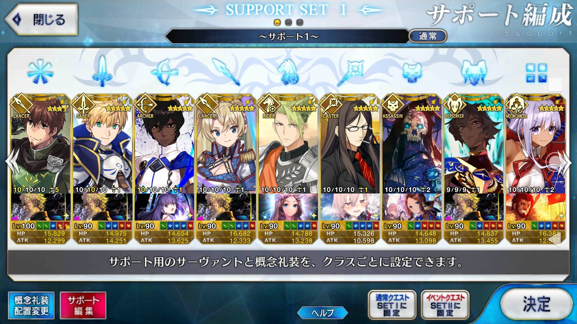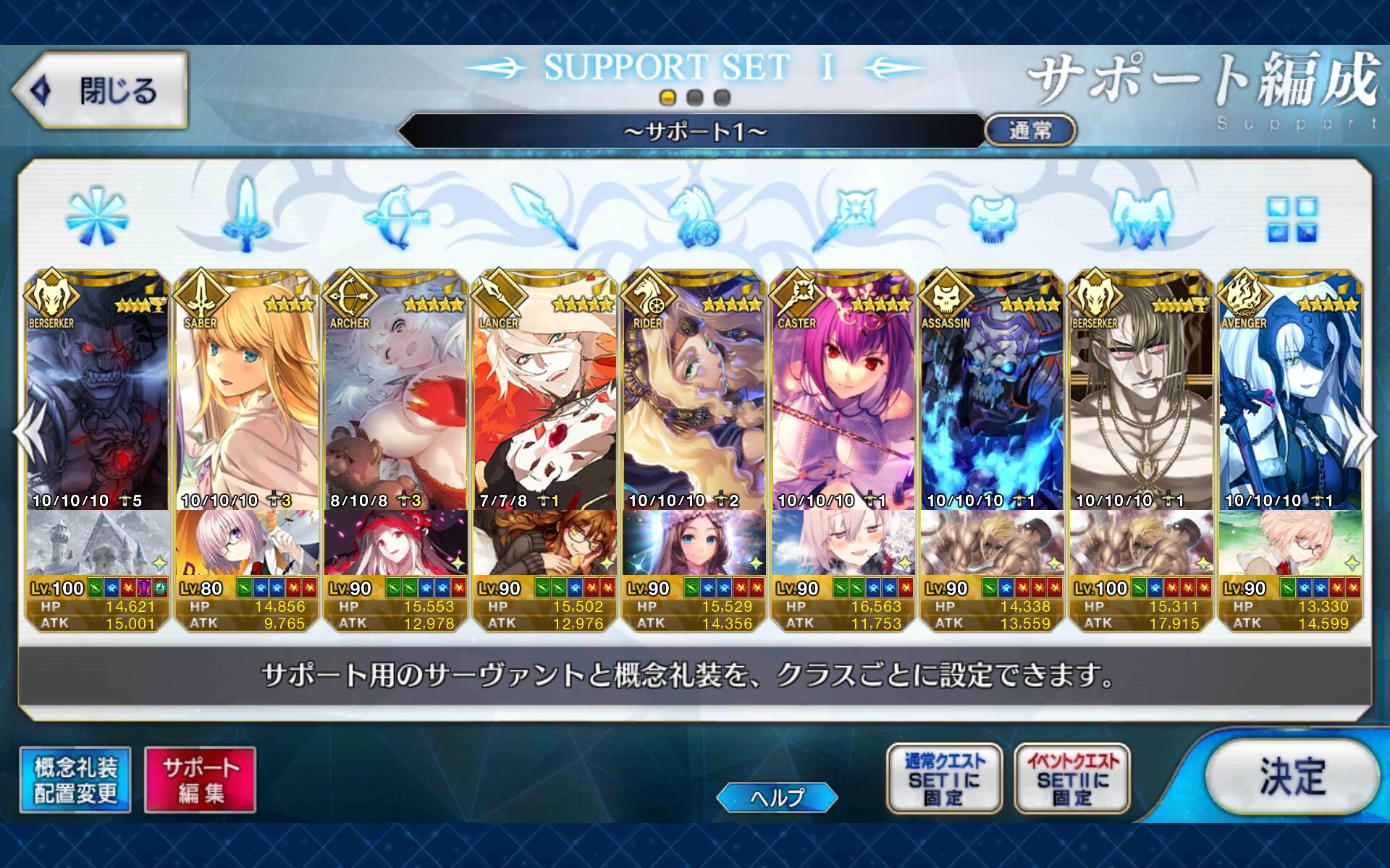 個人的にサポートの育成度合いは気にならんけどLv1すら置かずに空だったり礼装が数個前のイベントのままだったりするとちょっと…ってなるな