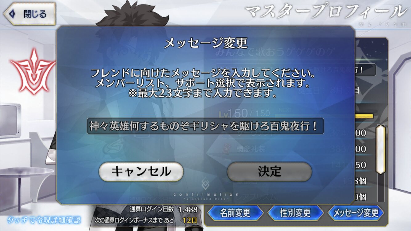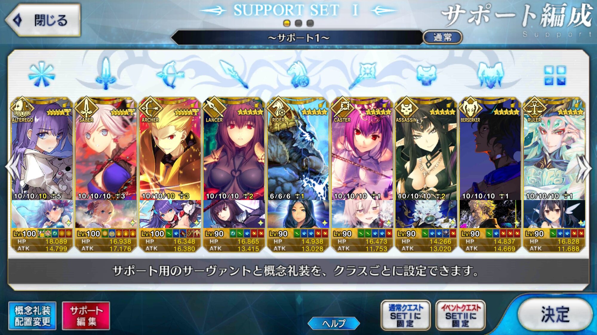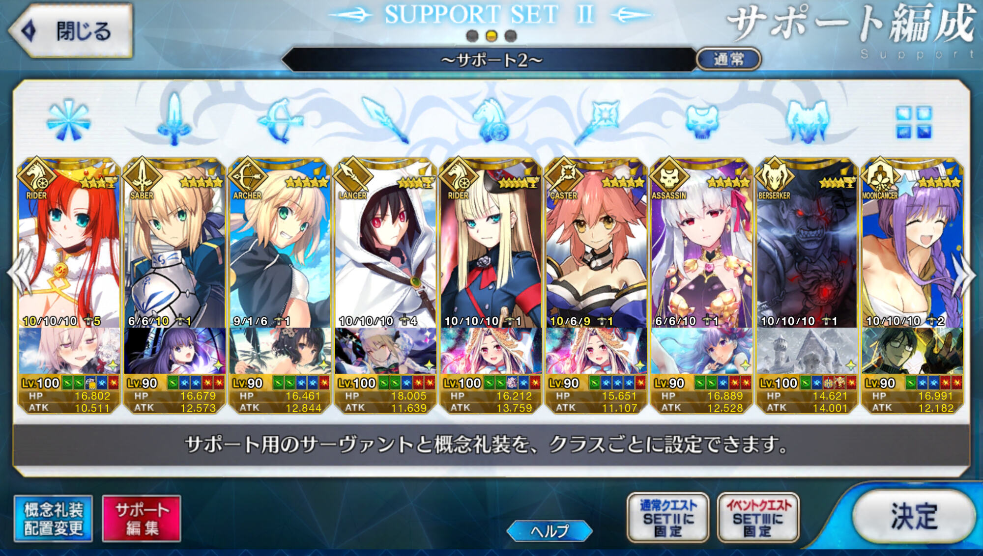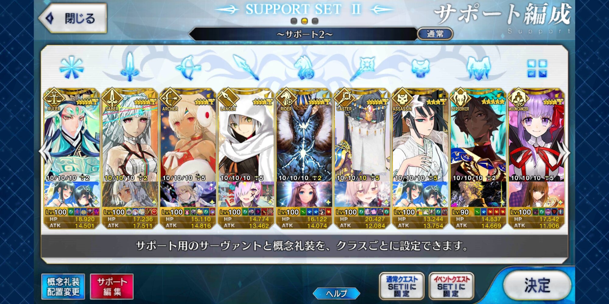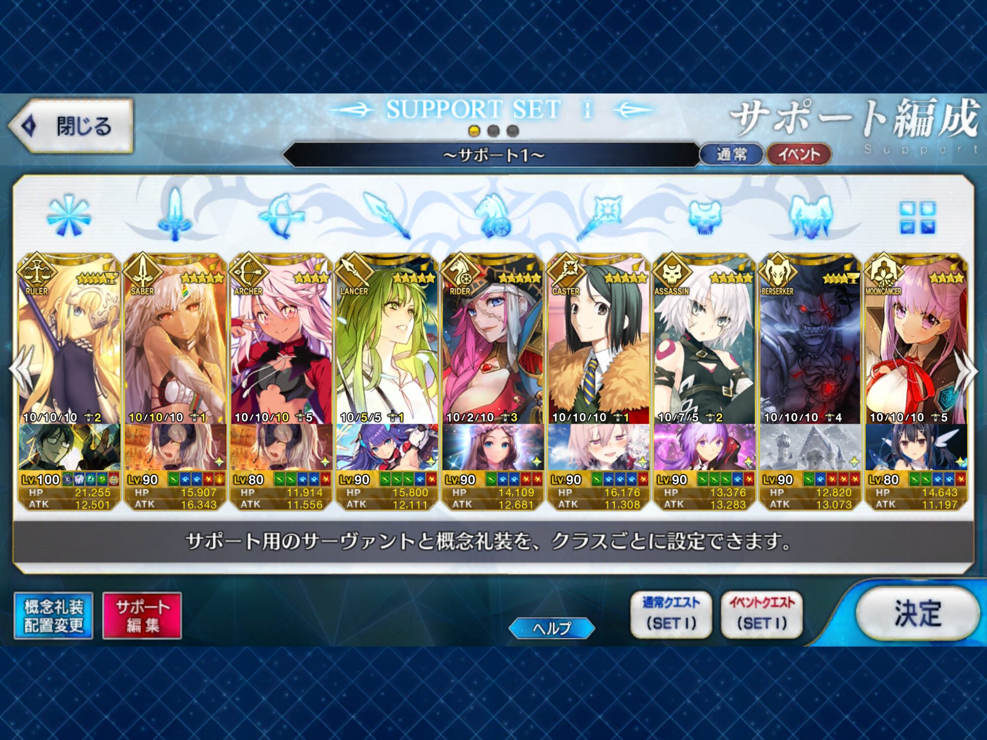 個人的にサポートの育成度合いは気にならんけどLv1すら置かずに空だったり礼装が数個前のイベントのままだったりするとちょっと…ってなるな
