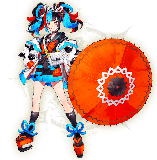 まずはキラキラのアーチャーの服装を見てみよう。富士山や手裏剣、番傘など至る所に和のテイストが仕込まれており、海外の方でも1発で日本のサーヴァントと認識できる程だ