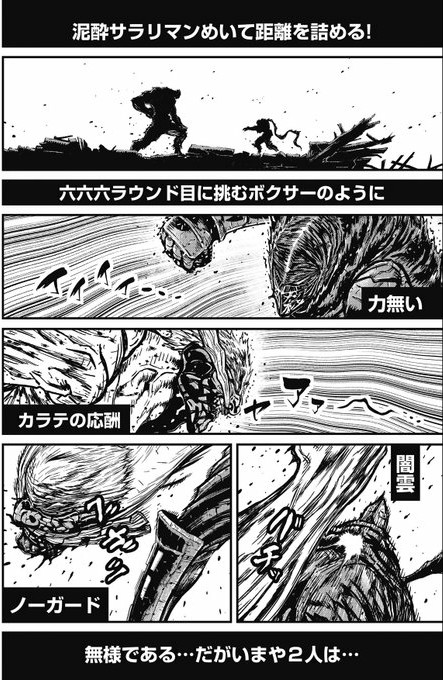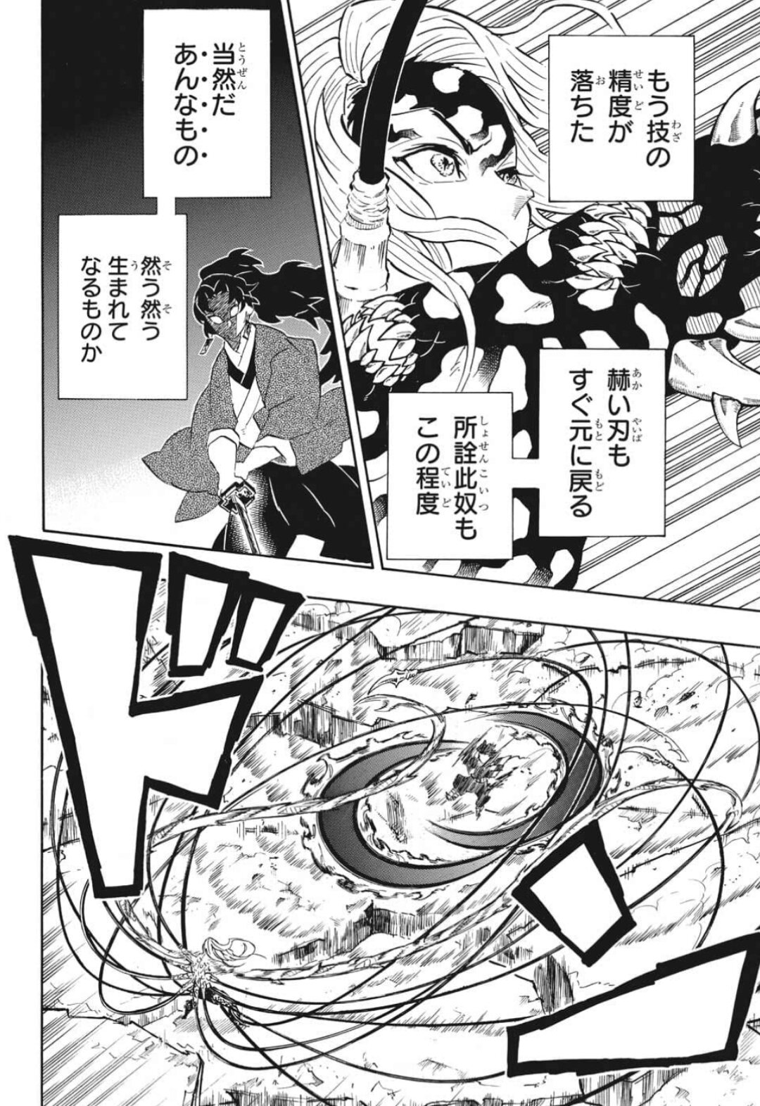 まだ行間とコマの間以外では殴ってないだろ!!しかし無惨様、9000年分老化して炭治郎ソロでも善戦できてるわけだけど