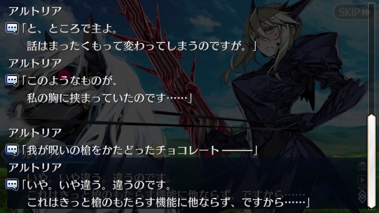 …………プレイの一環とかバグによる影響とかで「生前の言語しか喋れないサーヴァント」と言葉で通じないぶん態度で愛を伝えるとか、いかがでせう?ハーレムエンドでの女性陣へのアンケート