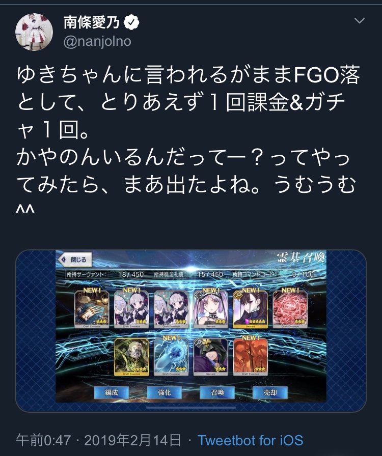 カエサル強化キタ━(゚∀゚)━!(゚∀゚ 三 ゚∀゚)!というか設定通りの奴かこれ!フゥー!やったやった!でもまだ聖杯育成追い付いてないの!