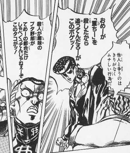 ジョジョ世界、稀にスタンドを超えた身体能力の常人いるよね、露伴先生や動かないの橋本陽馬とか(橋本はヘルメスの化身だけども)>>118