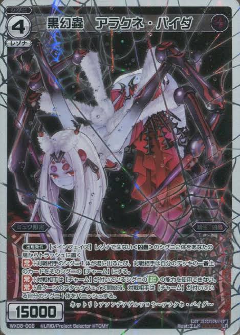 アラクネの擬神兵で、上半身は女性下半身は蜘蛛のそれ。蜘蛛らしく糸を張ったり毒の爪を持ってたりする
