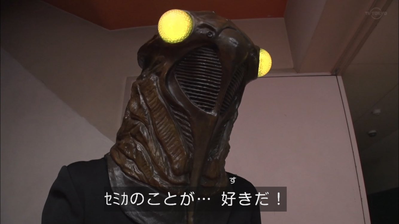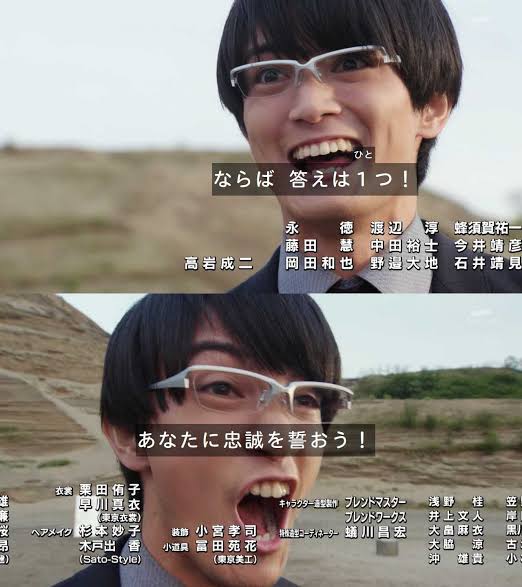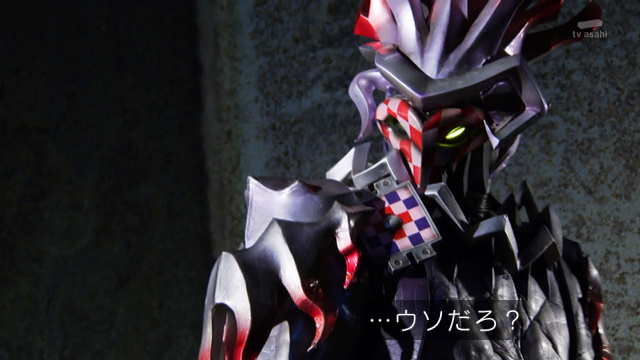 複眼の感じは迅っぽいけど、ただテロップが敵か味方か?謎の新ライダー!みたいな感じなのと、これまでなかった赤だから亡に一票お前は本当にブレないな(呆れ)